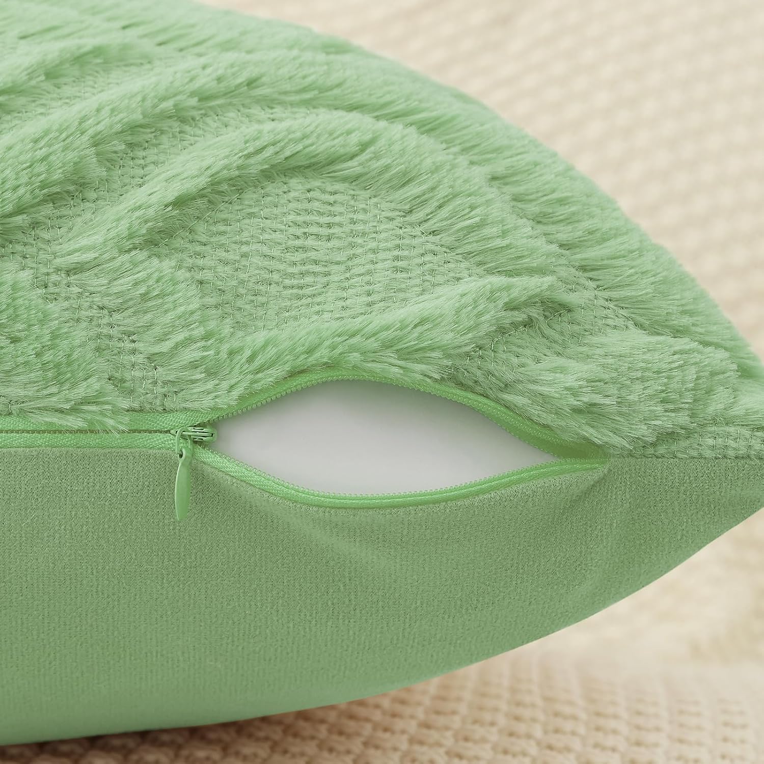 decorUhome Throw Pillow Covers 26x26 Inch Set of 2, Soft Plush Decorative Faux Fur Sage Green Solid Couch Pillow Covers, Accent Farmhouse Neutral Square Euro Pillow Cases for Sofa Bed Living Room