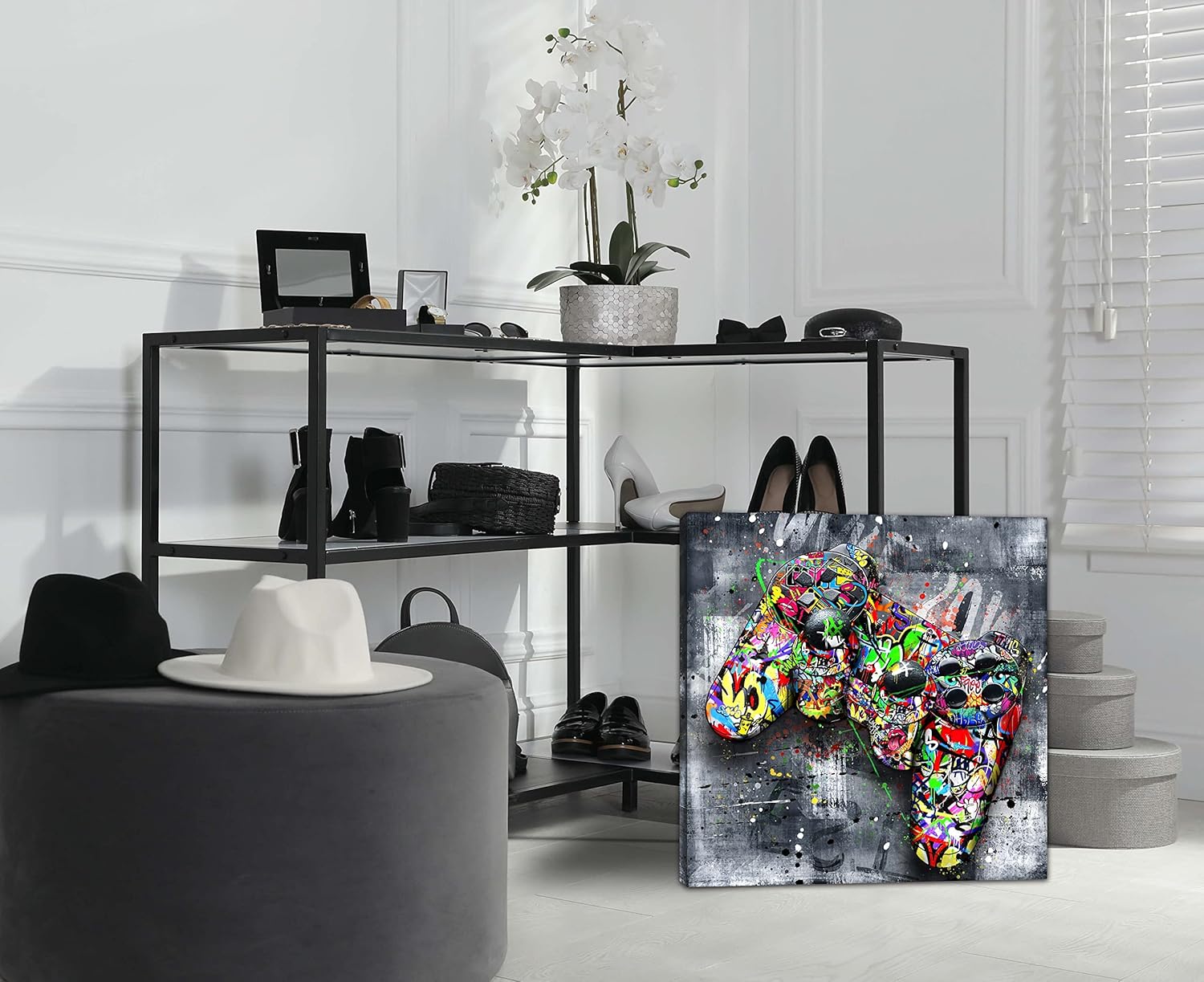 - 【HI-Q MATERIAL】 High quality, HD prints on premium canvas, waterproof canvas, UV resistant, fading resistant indoor. Graffiti canvas wall art banksy gaming wall art abstract wall painting