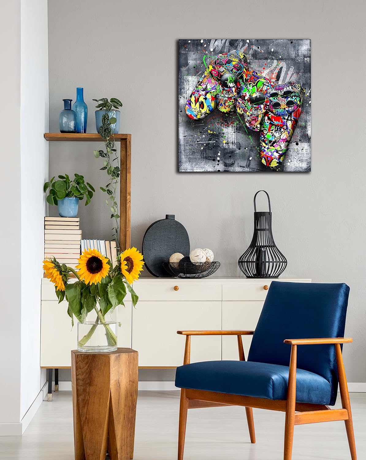 - 【CANVAS WALL ART SIZE】 Size is 20" x 20" Graffiti canvas wall art banksy gaming wall art abstract wall painting
