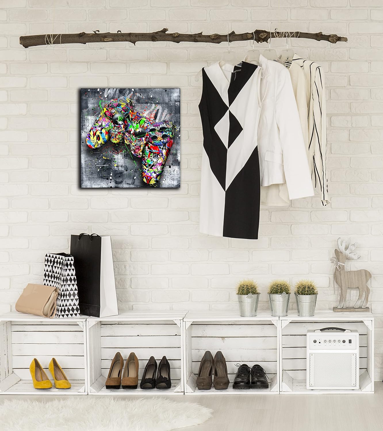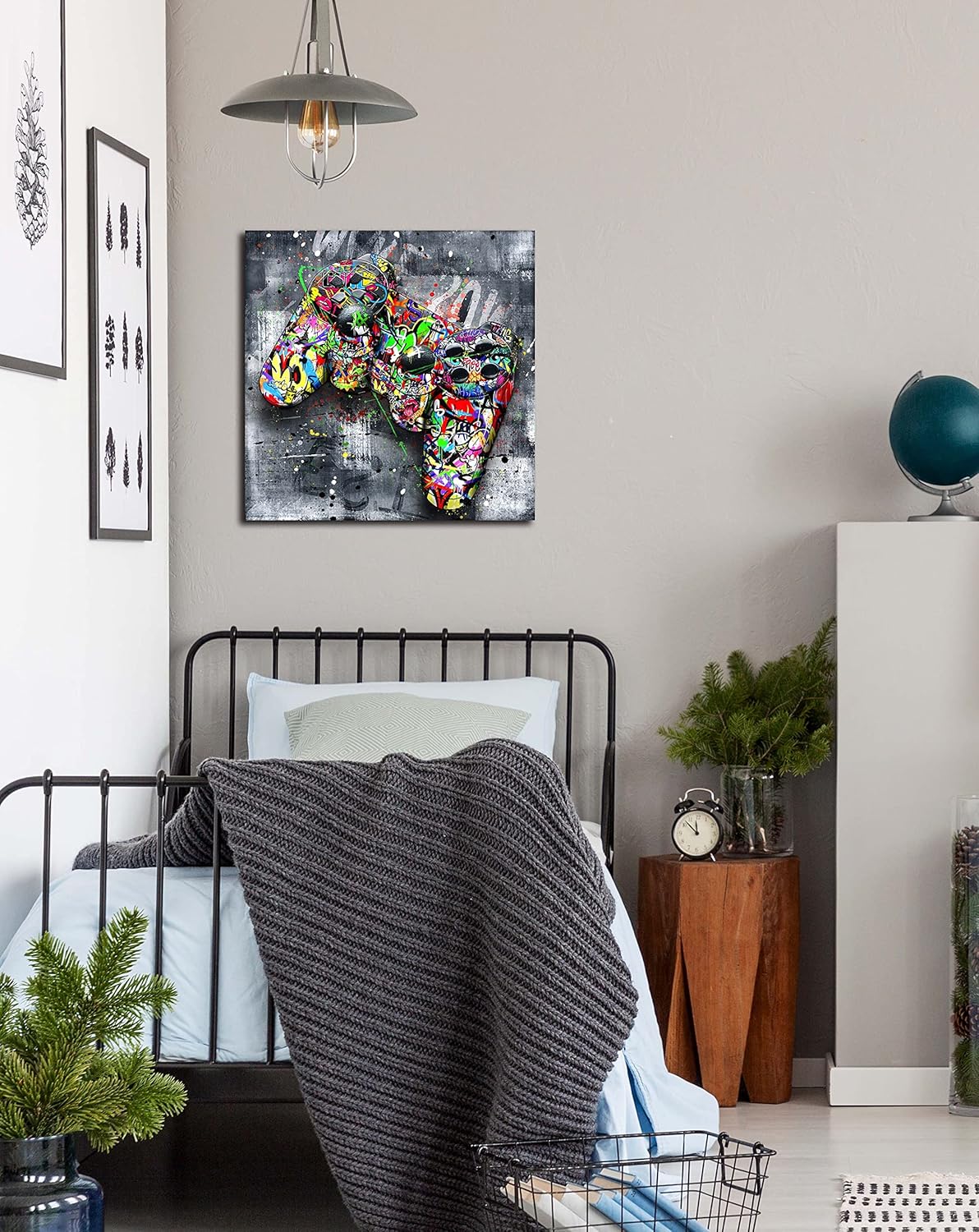 - 【STYLISH CANVAS ART DESIGN】 Looks exactly as pictured,Good idea for home interior walls decor such as wall art for bedroom,guest room, hotel, dining room wall decor and others. It’s a great gift ideal to your friends.Graffiti canvas wall art banksy gaming wall art abstract wall painting