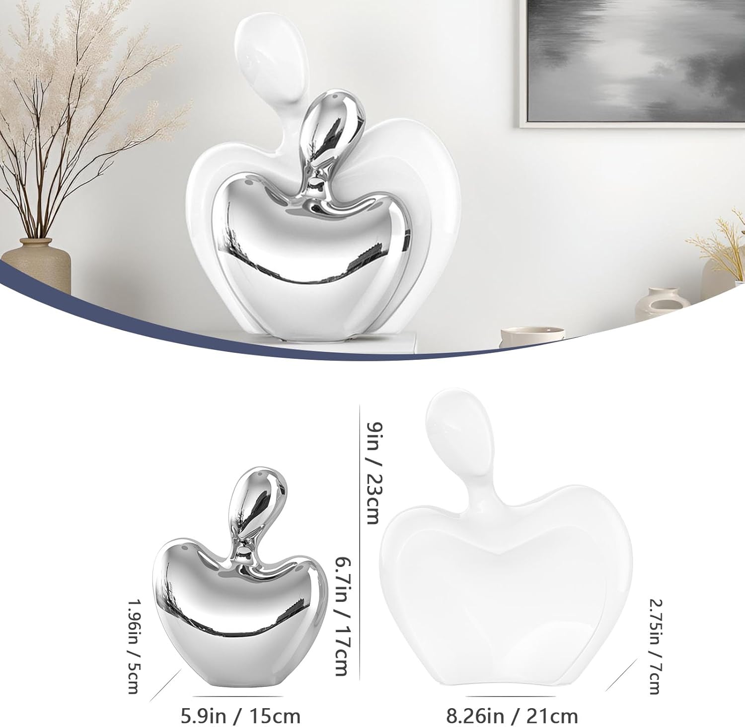 XMGZQ White and Silver Ceramic Couple Figurines Home Decor,Wedding Engagement Romantic Gift for Husband Wife,Large Male and Female Love Statue Valentine's Day Birthday,Abstract Hugging Couple
