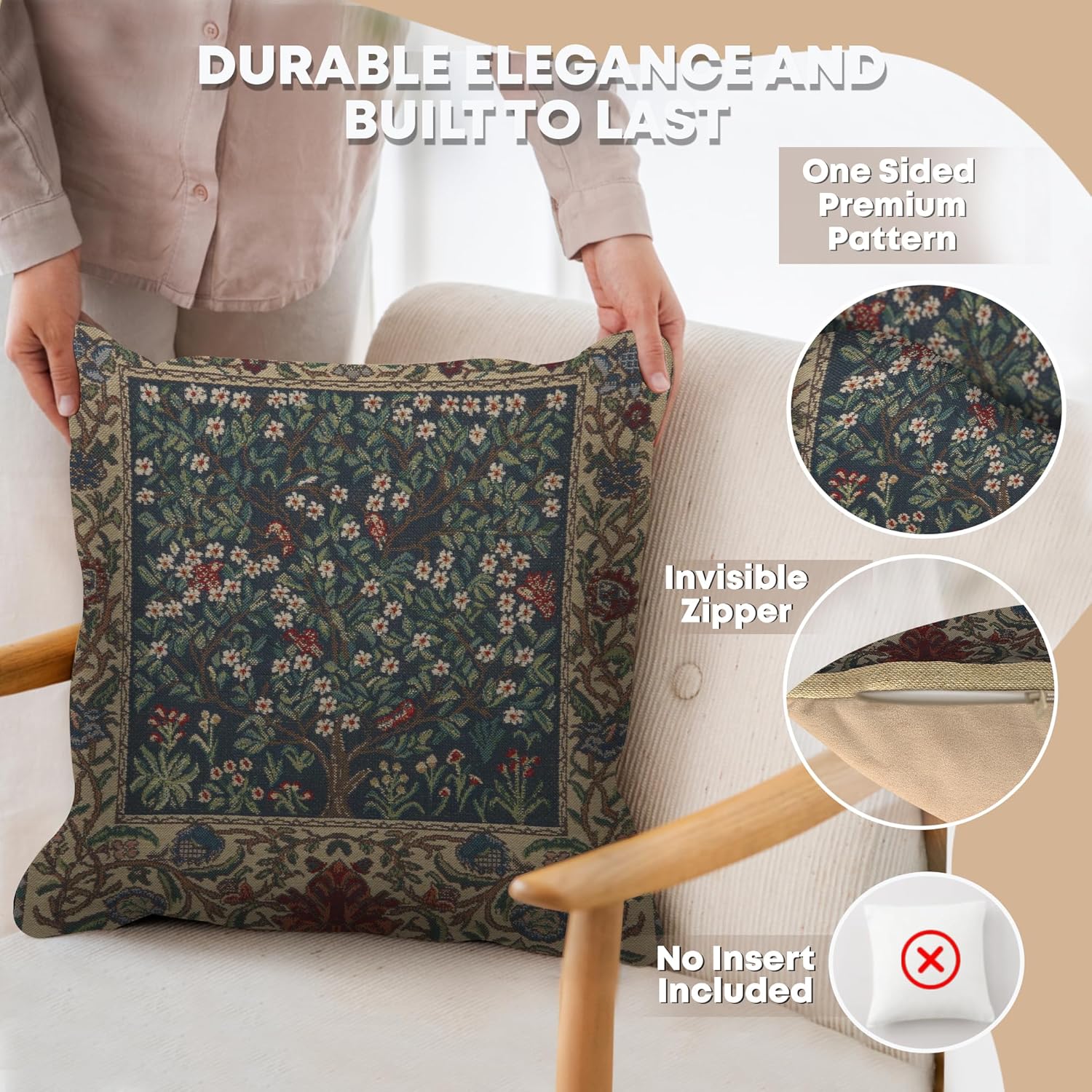 - Impeccable Craftsmanship: Are you searching for the perfect ambiance for your loved ones? Say goodbye to the crappy throw pillow cover and experience the epitome of Jacquard fabric decorative pillow covers made with high-quality 100% cotton. Elevate the aesthetics of your living space using our green tree tapestry pillow covers. Impress your guests with our carefully crafted handmade covers, created by artisans in Belgium on woven panels to add splendid details to your decor