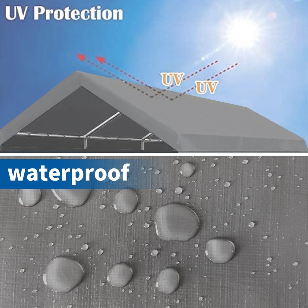 10'x20' Upgraded Carport Replacement Top Canopy Cover for Car Garage Shelter Tent Party Tent with Ball Bungees Grey (Only Top Cover, Frame is not Included)