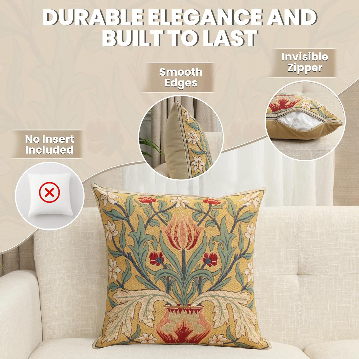 - Exclusive Design Excellence: The decorative pillow covers are made of high-quality jacquard woven fabric, 100% cotton for extreme comfort and durability. The designs of these William Morris pillow covers are woven with precision using the most vibrant colors. The zippers are hidden and overlock stitch seams create an appearance of sophistication while providing durability for any home decor