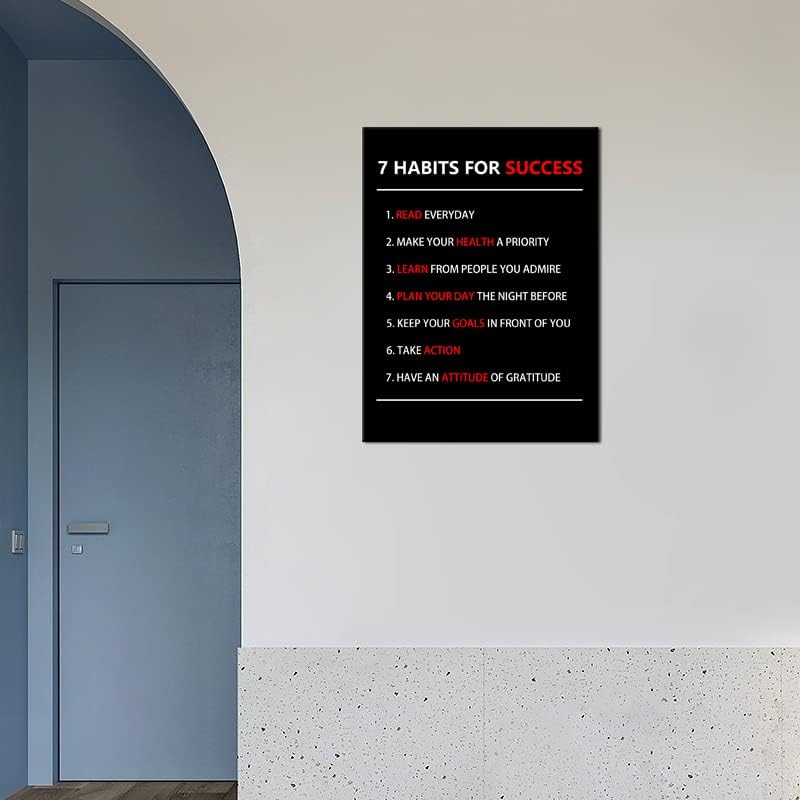 WYJZDZQ8 7 Habits For Success Inspirational Wall Art Motivational Canvas Painting Prints Pictures Poster Inspiring Office Decor Artwork Living Room Gym Decoration Framed Ready to Hang [30''W X 40''H]