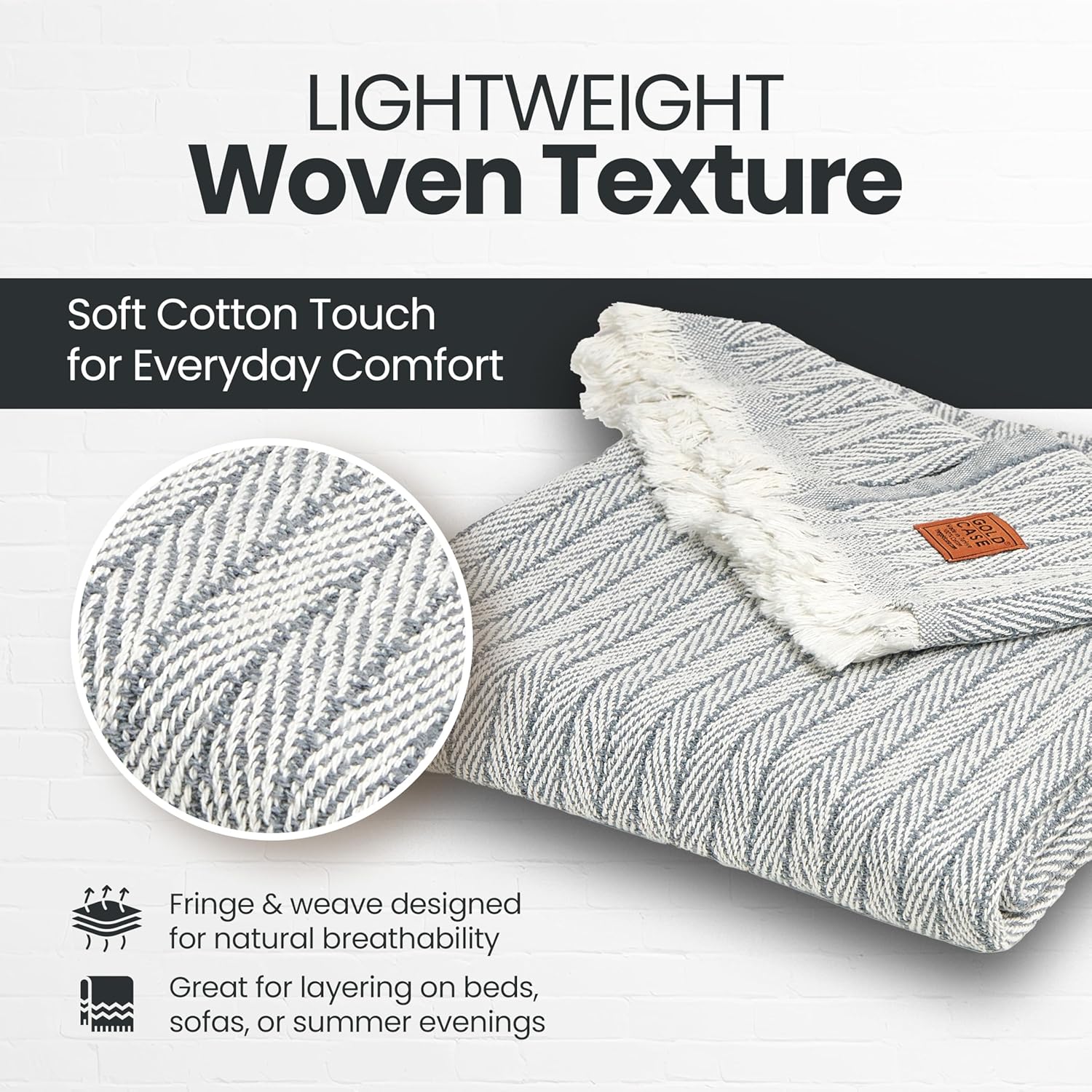 Gold Case Throw Blanket for Couch – 100% Recycled Turkish Cotton Blankets & Throws – Elegant Decorative Throw Blankets for Living Room Sofa – Woven Throws for Couch – Vintage Grey– 60x80