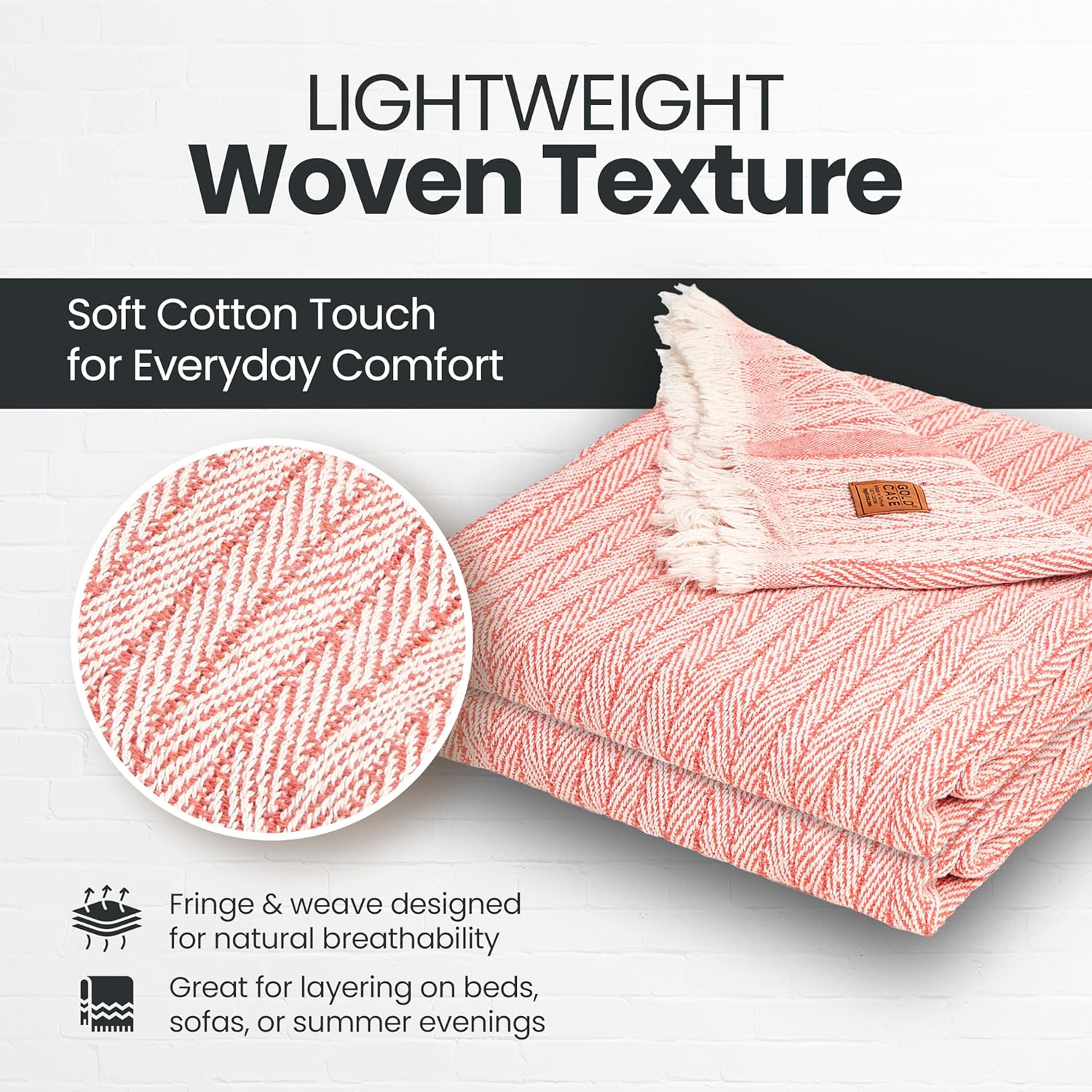 - LIGHTWEIGHT LAYERS FOR RELAXED MOMENTS: Woven from 100% recycled Turkish cotton, this breathable and cute throw blanket adds a soft, textured touch to your space; made for layering on the couch, tossing over your shoulders, or adding a laid-back look to your decor