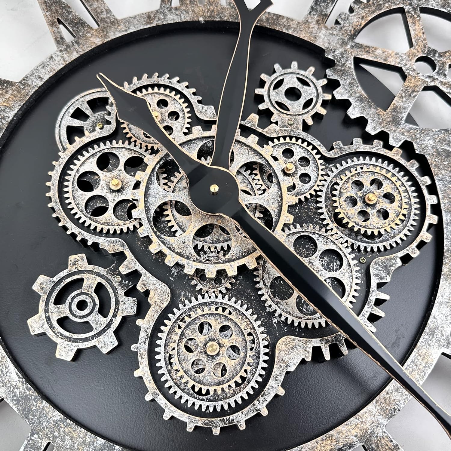 - WIDE APPLICATIONS: Oversized rustic wall clock is not only a timepiece, but also a piece of artwork, greatly adding charm to a room, like living room, farmhouse, fireplace, bedroom or dining room, studio, gallery, loft, cafe, bar, club, etc. Decorative wall clock will become an instant conversational piece for the moving gears and how cool it looks. Also awesome gifts for families or friends.