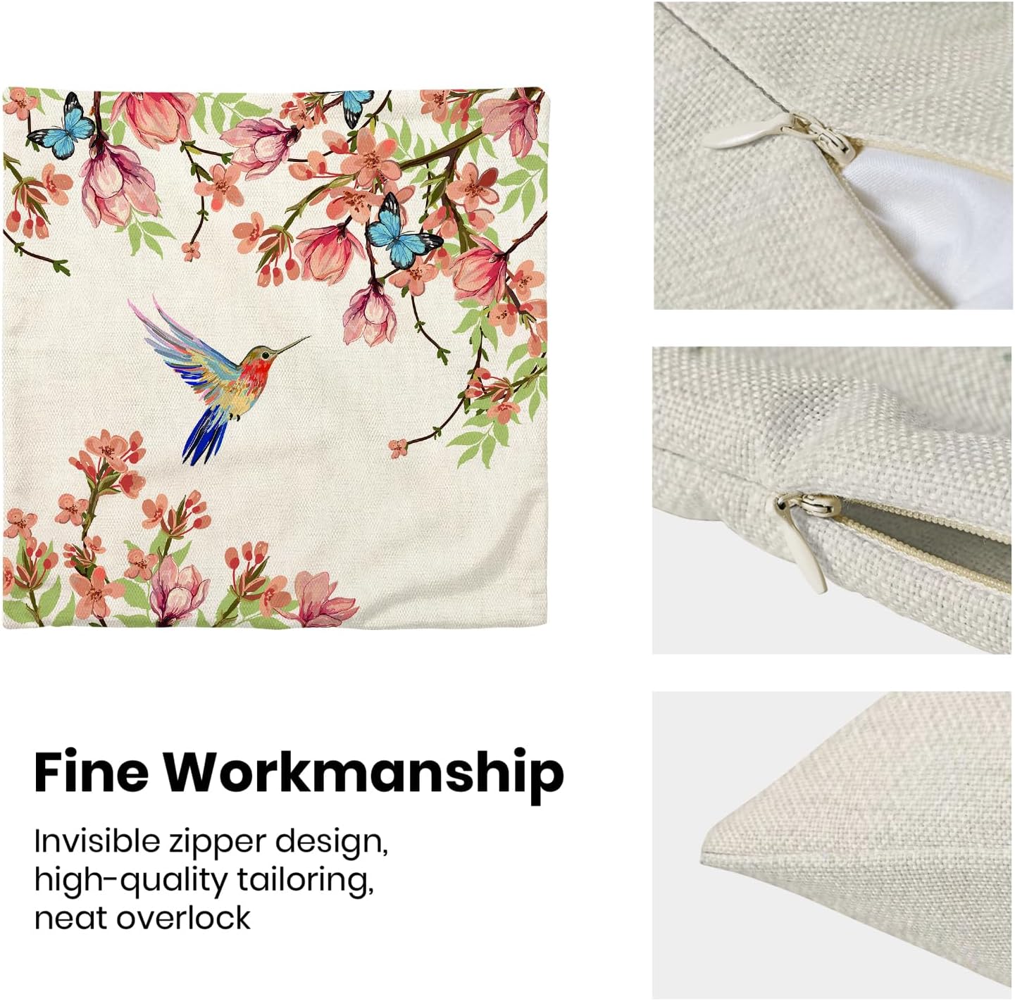 - 【Spring Pillow Covers】 Our pink flower throw pillow covers 20x20 inch are made of excellent breathable polyester linen fabric. The hummingbird decorative pillow covers is durable, soft and skin-friendly. The plant outdoor pillow covers adopt exquisite edging technology and four sides of our floral pillow covers are sewn firmly, which is not easy to open the line.