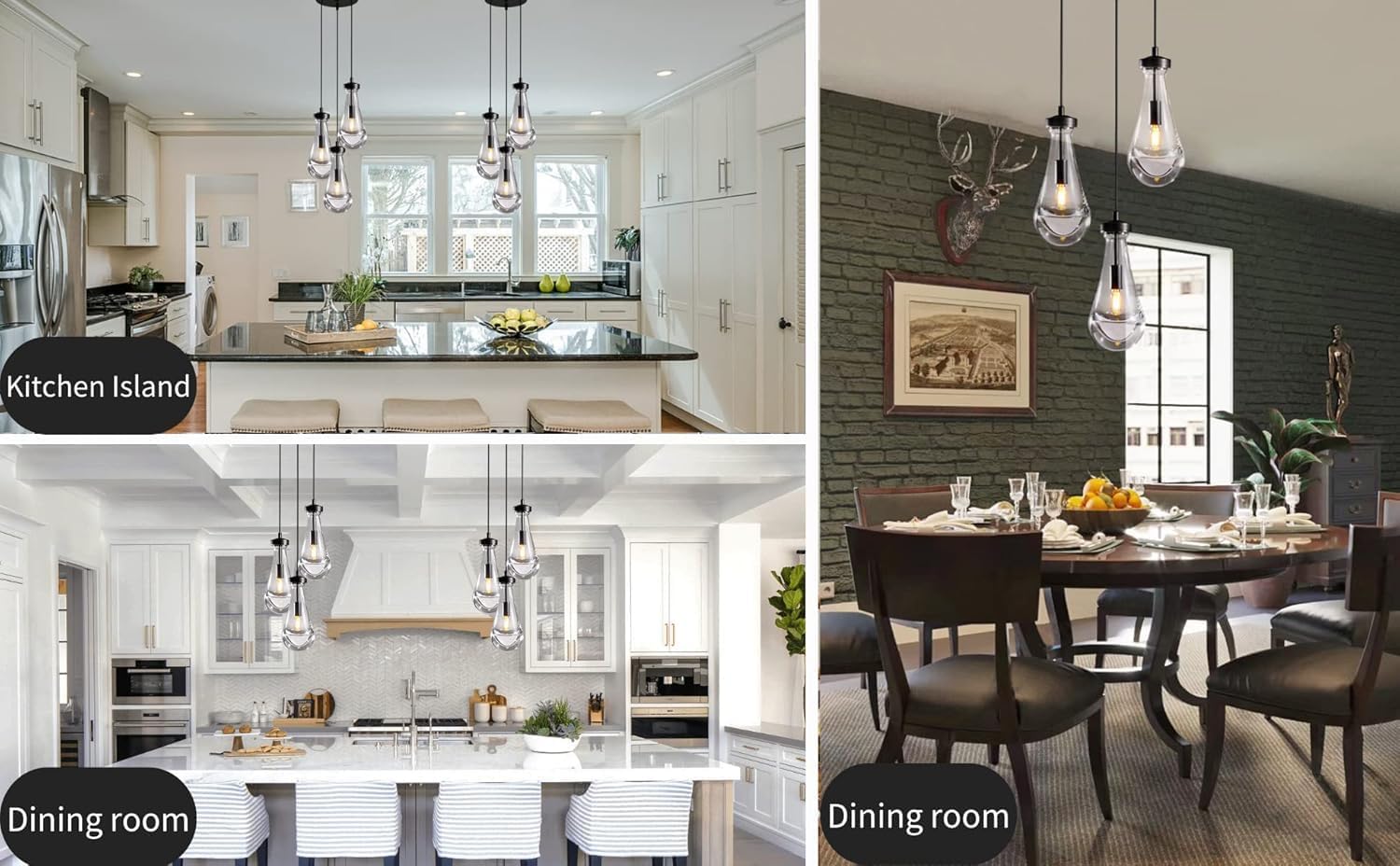 - 【Thickened Copper Material】All metal fittings of the black raindrop chandelier are made of thickened metal copper. The larger & thicker fixing plate can withstand 3 times the weight of the pendant lights kitchen island, allowing the 3-light pendant lighting to be securely fixed to the ceiling.