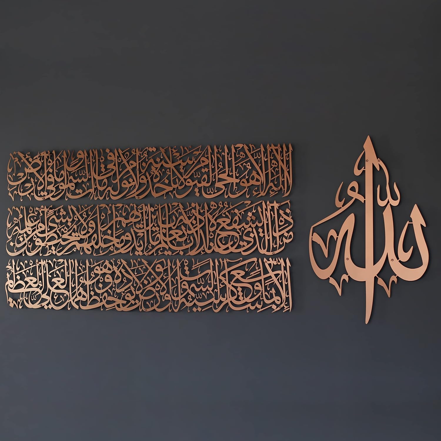 Modern Islamic Wall Art, Ayatul Kursi Metal Artwork, Perfect for Ramadan Decorations, Muslim Housewarming Gifts, Arabic Calligraphy Throne Verse Wall Decor, Ideal Eid Decor (Medium, Matte Copper)