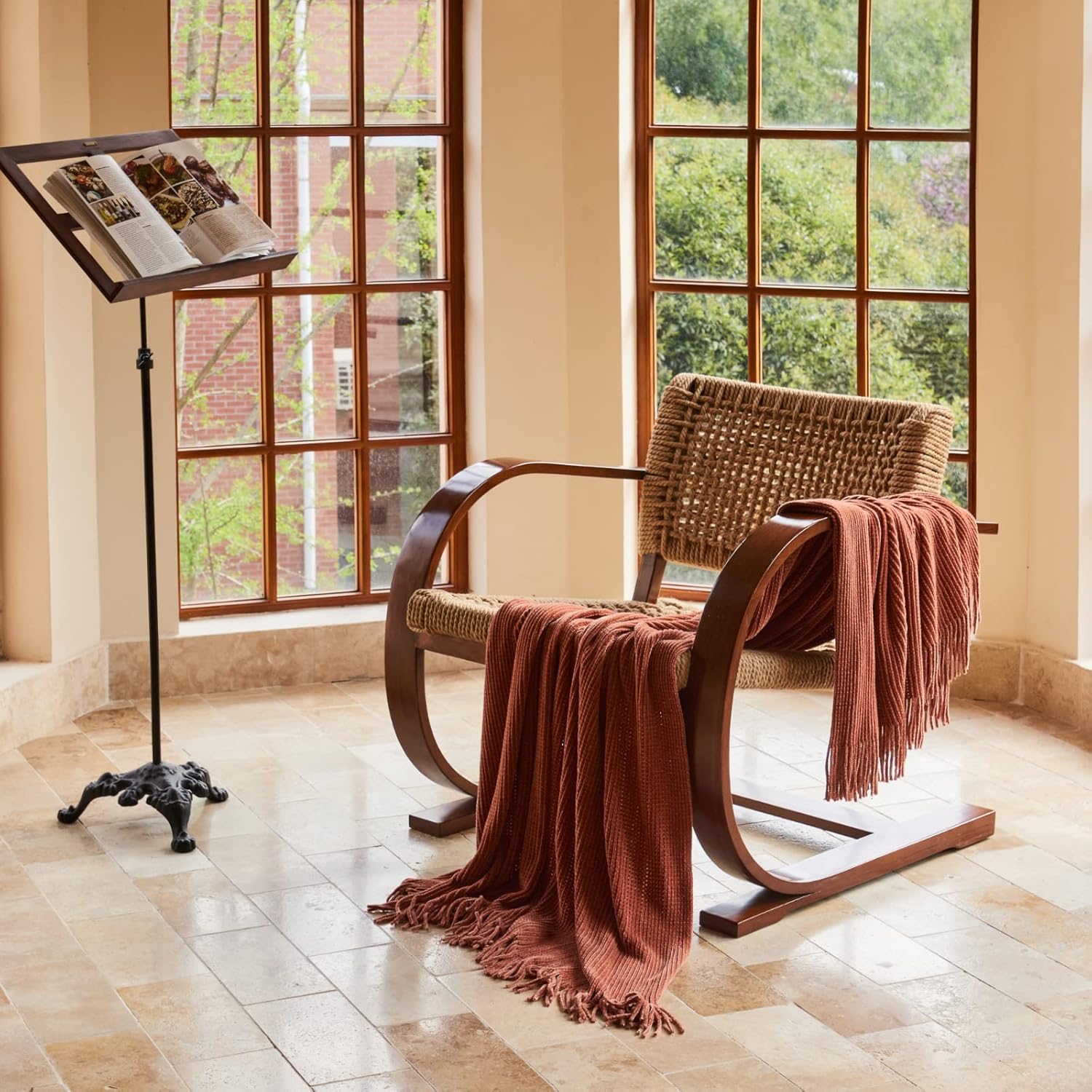 - 【FANTASTICAL DESGIN】LIFEIN throw blanket for couch nicely neutral solid knit design and well-arranged rustic farmhouse style fringes, this knitted throw blanket is in kinda terracotta/burnt orange rust, which is a pretty easy way to match your room to add an extra solid terracotta boho feature, don't you want have a rust throw blanket for your home decor?