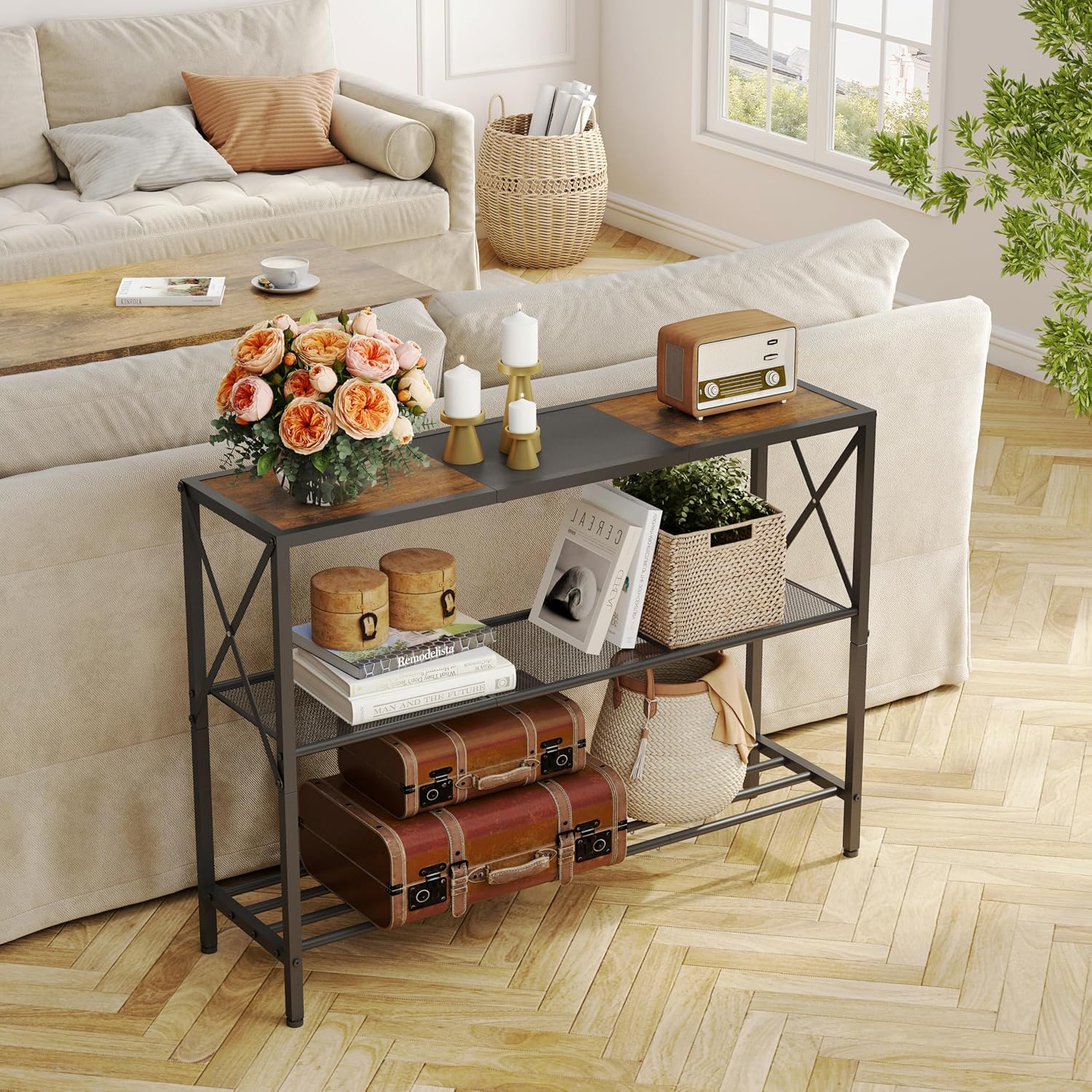 Hoctieon Industrial Console Table, 3 Tier Entryway Table, Hallway Table, Narrow Sofa Table with Shelves, Entrance Table for Entryway, Rustic Brown&Black