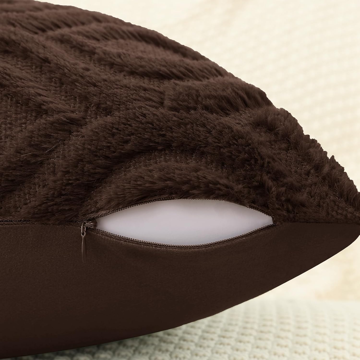 decorUhome Throw Pillow Covers 18x18 Inch Set of 2, Soft Plush Decorative Faux Fur Dark Brown Solid Couch Pillow Covers, Accent Farmhouse Neutral Square Euro Pillow Cases for Sofa Bed Living Room