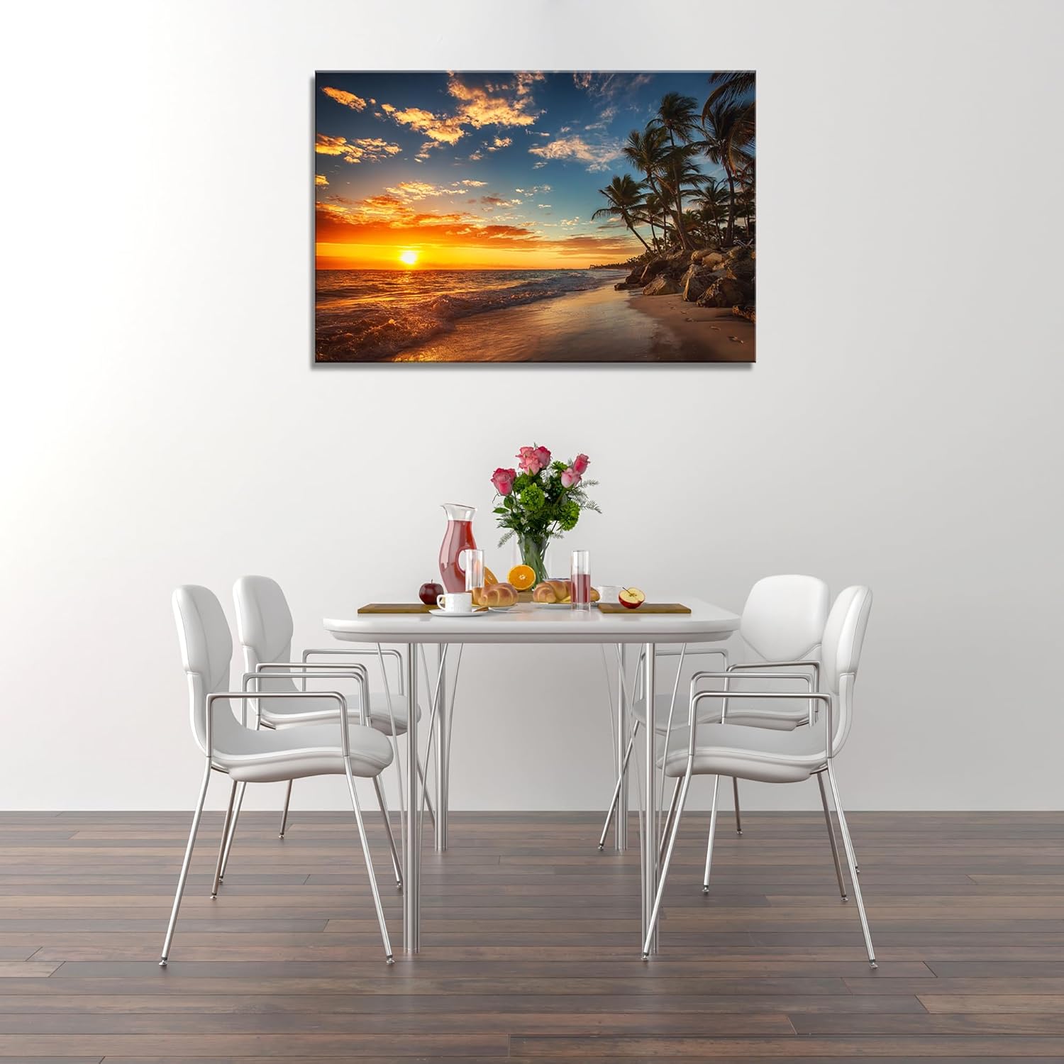 DZL Art S74781 Canvas Painting Print Paradise Tropical Island Beach with Palms Photograph Print Nature Pictures Wall Art Canvas Prints Painting for Living Room Bedroom Decor Office Wall Decor