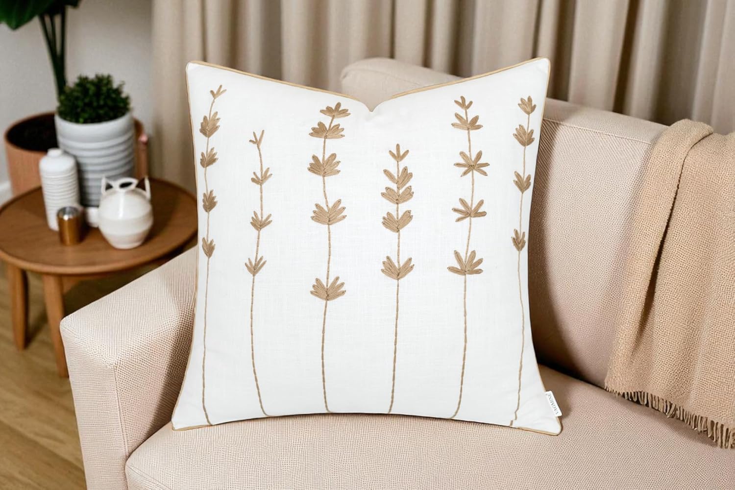 - HANDCRAFTED FLORAL EMBROIDERY - Featuring intricate hand-stitched daisy embroidery, this pillow cover brings an artisanal and elegant touch to any living space.