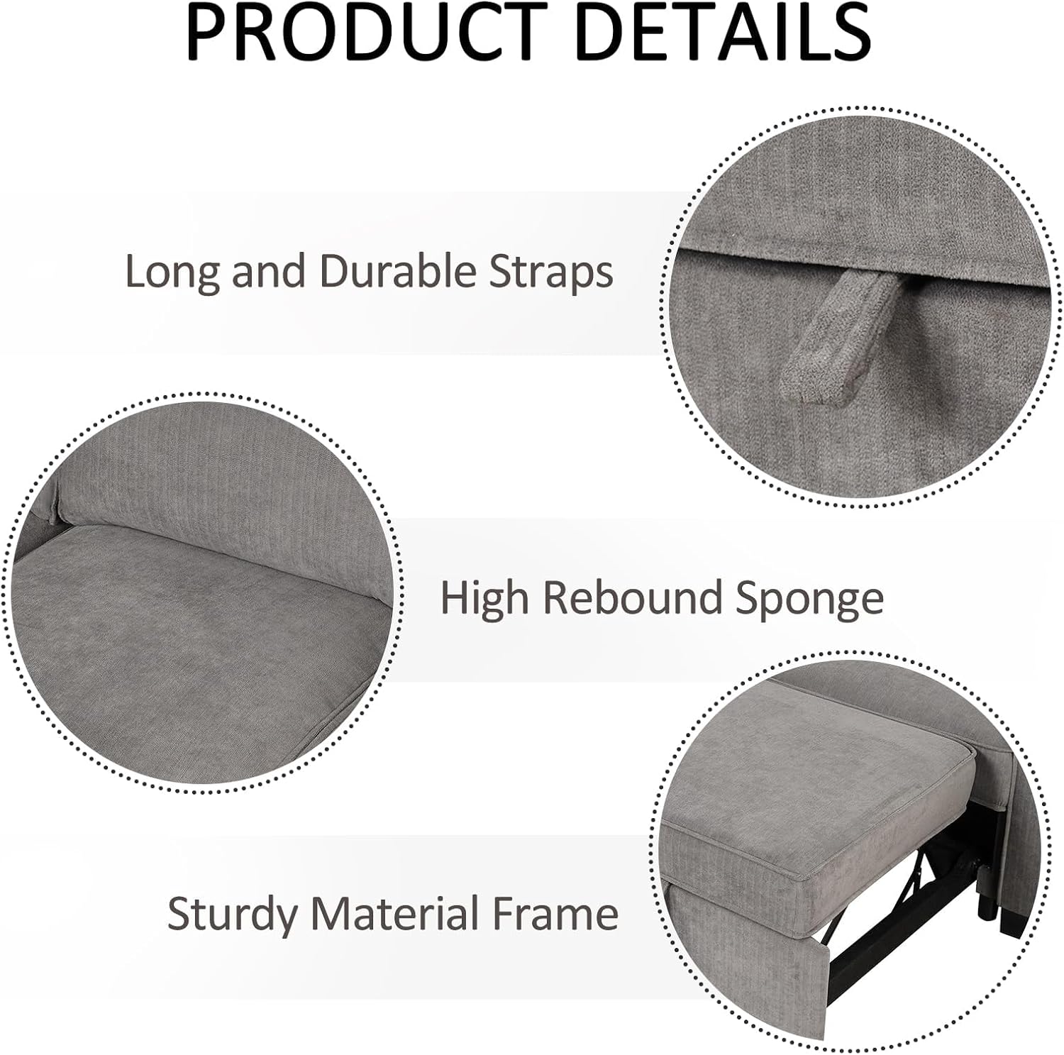 - Soft Chenille Material: The surface of our pull out couch bed is made of high-quality chenille, which is comfortable and not easy to wrinkle. The seat cushion of the convertible sleeper sofa is filled with high-density sponge, which is comfortable to sit on and not easy to sink after sitting for a long time