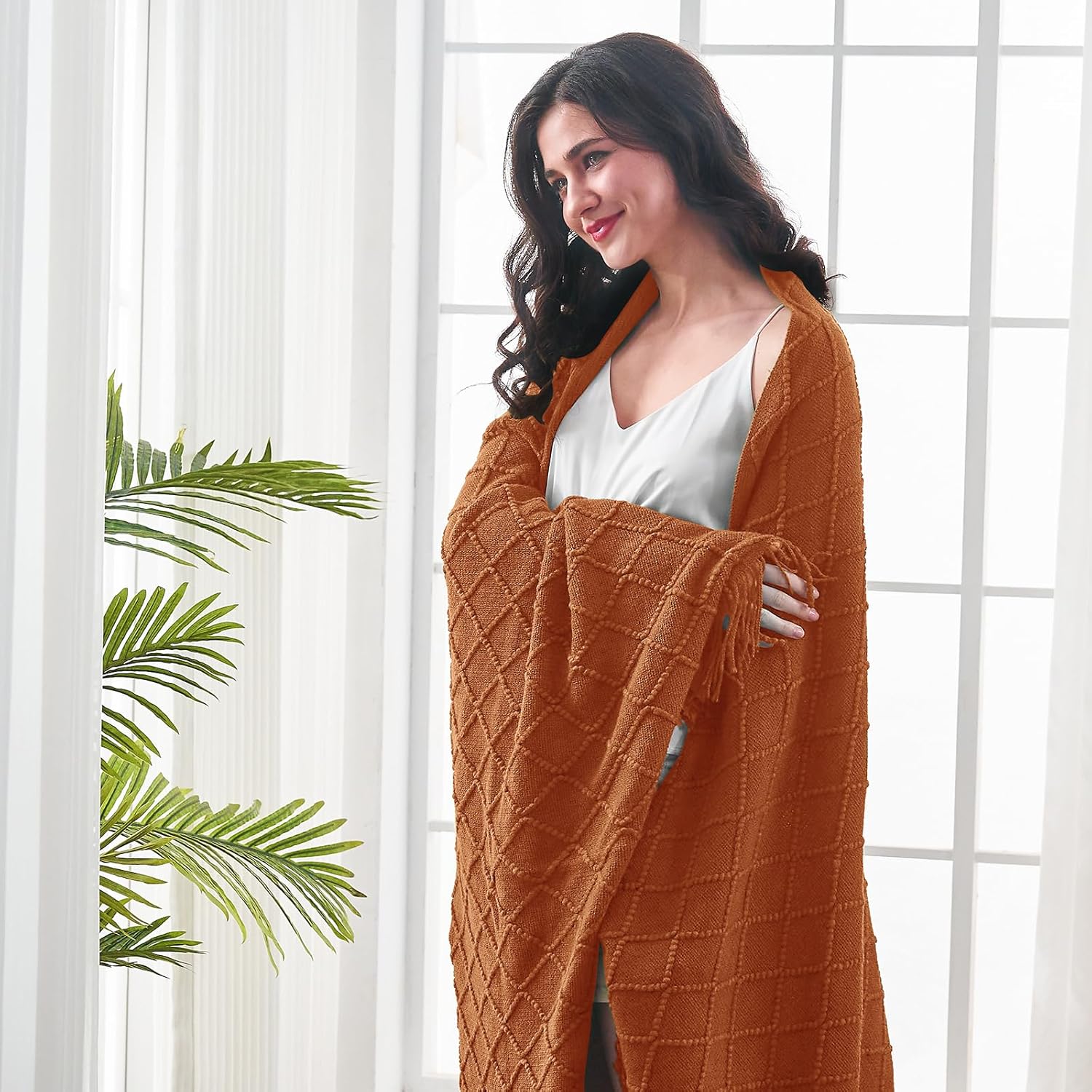- 【GIFT IDEAS】: Special knitted diamond patterns add a unique accent to your room and people draping it as a shawl. Very suitable for tasteful homeowners. Throw blanket for women, classic but not too tacky as a housewarming gift. Tips: Due to different lighting, display settings, or resolutions, the difference in color happens. We are dying to show the color. To do so, one of the images shows the color difference in different lighting. Hope these instructions would help you to buy a throw.