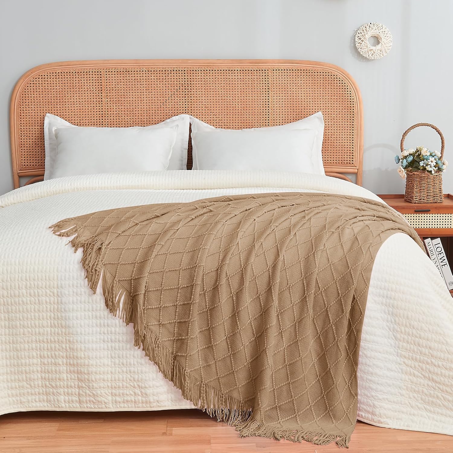 - 【FANTASTICAL COMBINATION】: Decorative blankets and throws ,nice raised diamond shape knit design and well-arranged fringes. It's couldn't be better to decorate your home for Christmas, Thanksgiving, and other holidays. A good cozy blanket is a combination of the right price, satisfactory adaptability, and lovely design.