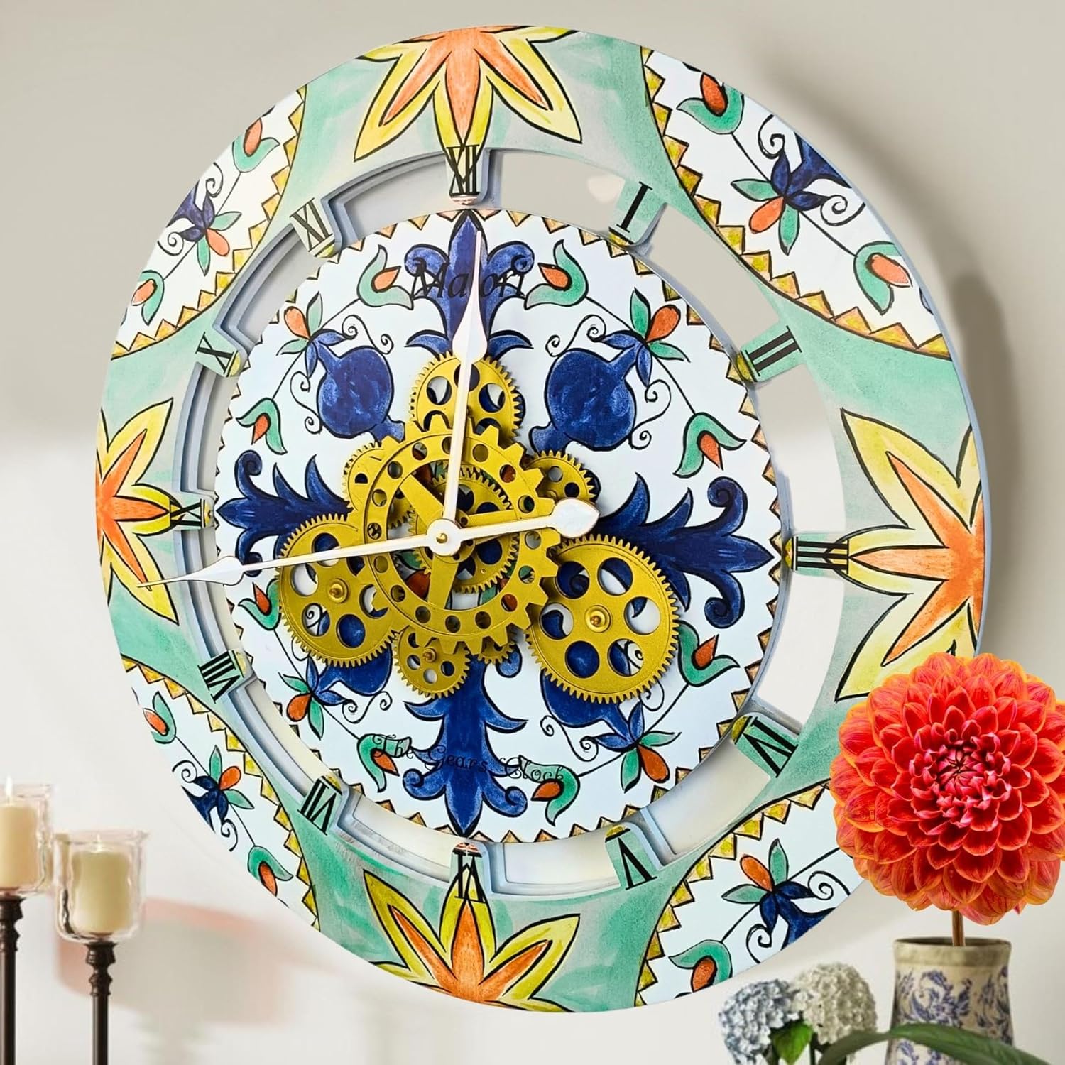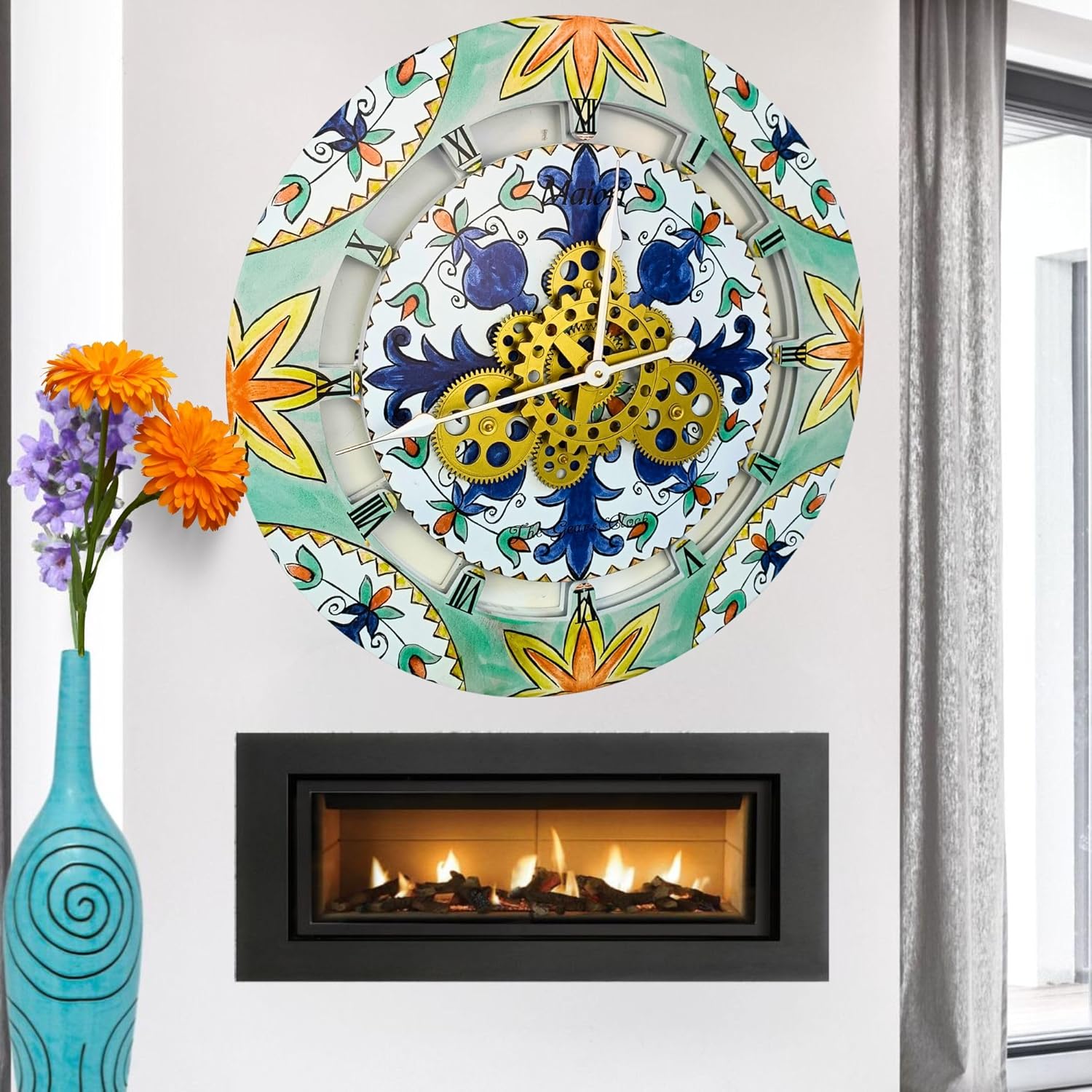 - Wall Clock Italy Collection with Real Moving Gears is an Art Timepiece inspired by the Famous Amalfi coast Tiles in Italy