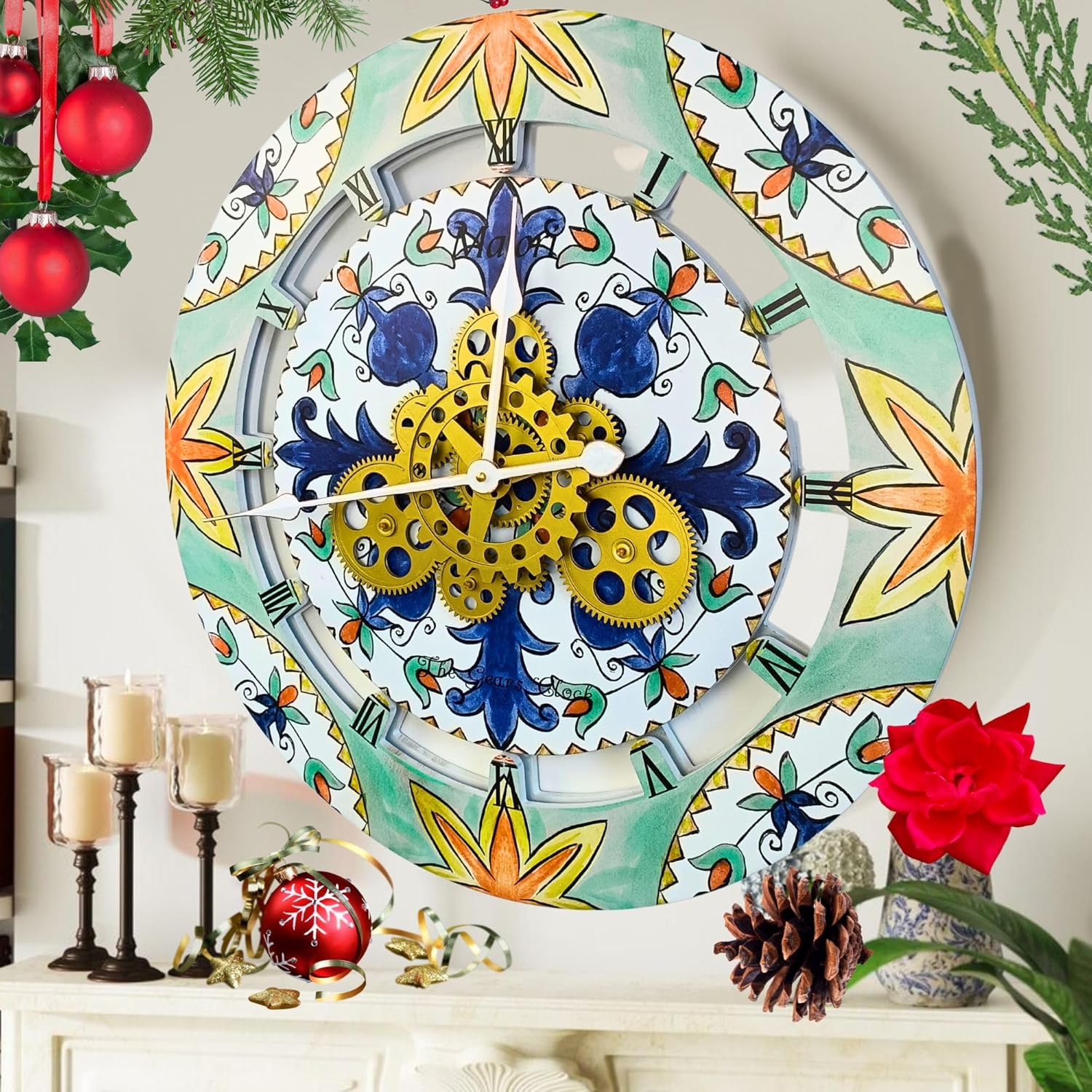 The Gears Clock Wall Clock Italy Collection with Moving Gears (Maiori, 24 inch Round)