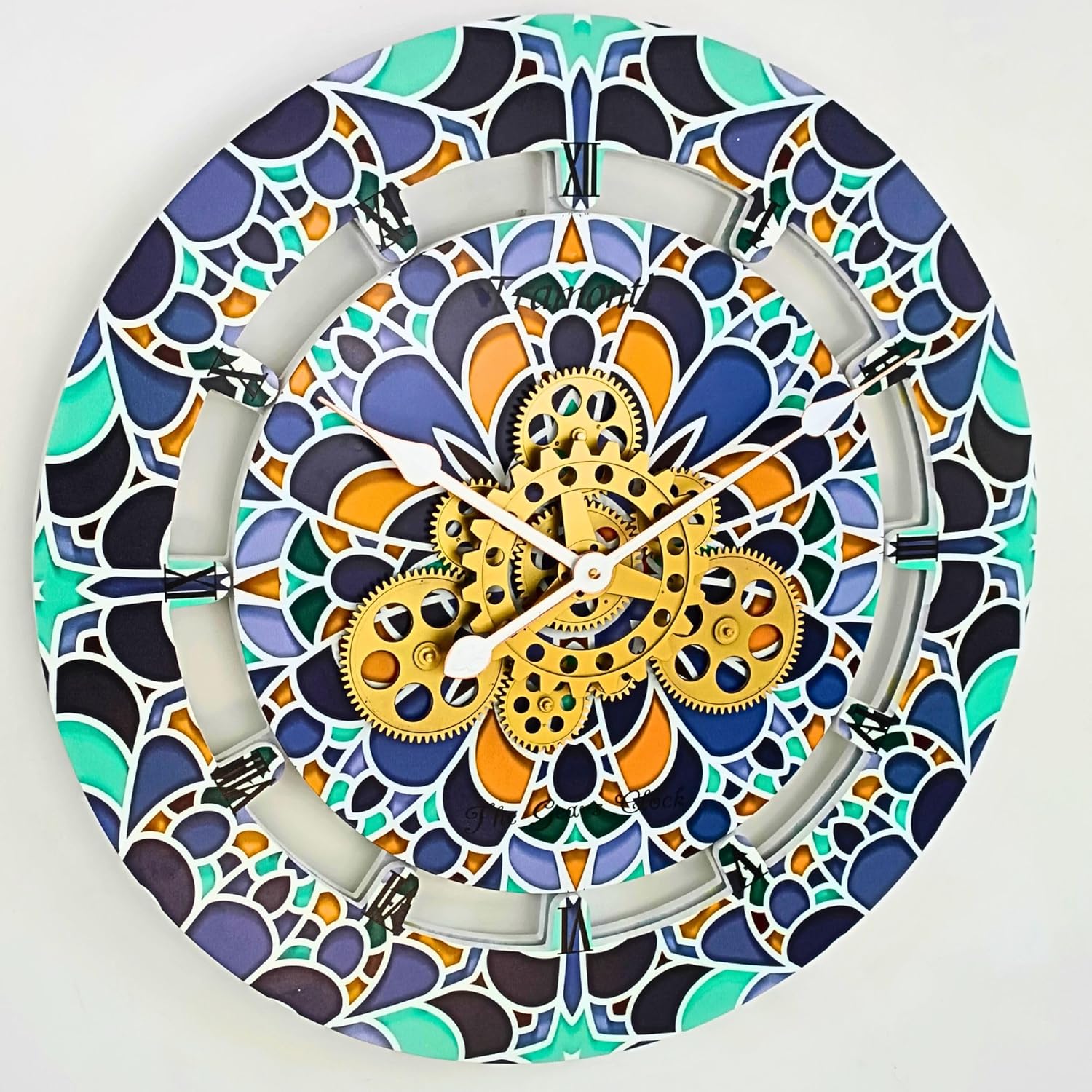 The Gears Clock Wall Clock Italy Collection with Moving Gears (Tramonti, 24 inch Round)