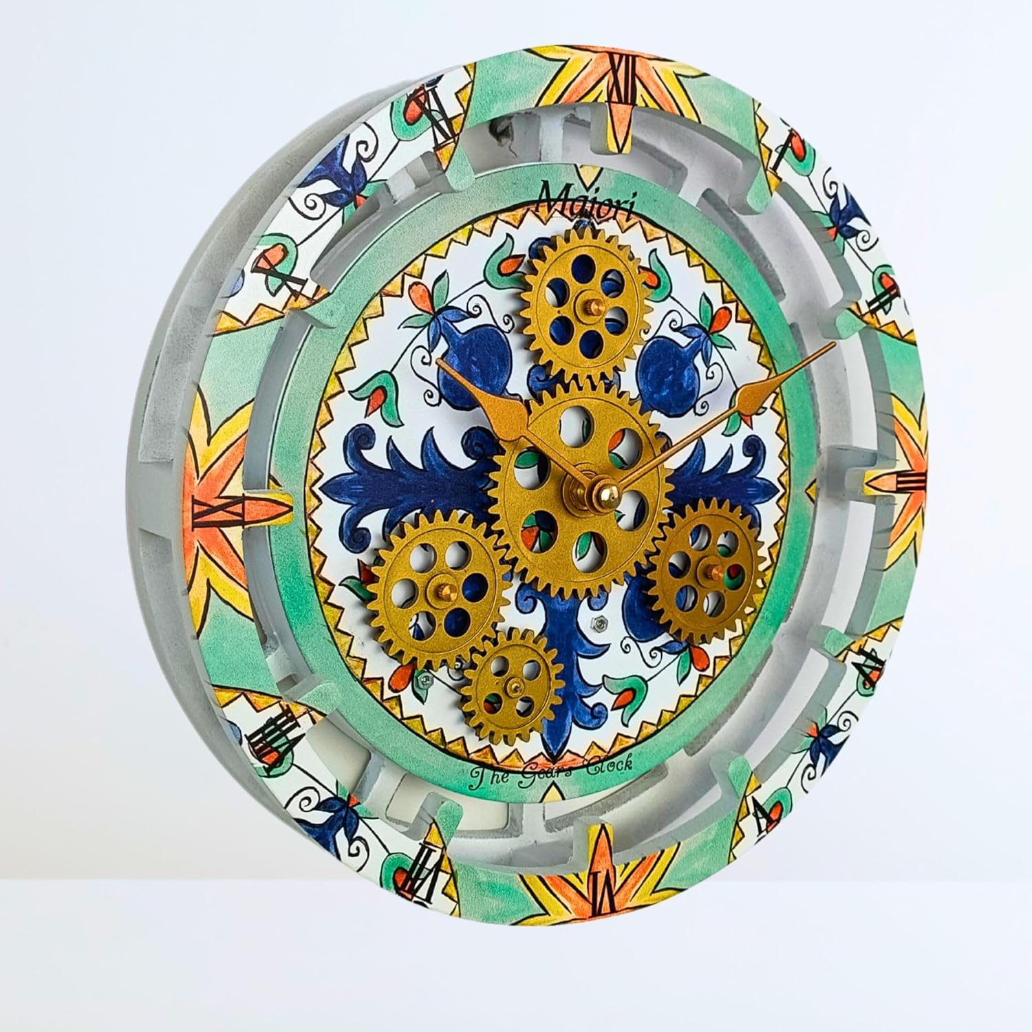 - Wall Clock Italy Collection with Real Moving Gears is an Art Timepiece inspired by the Famous Amalfi coast Tiles in Italy