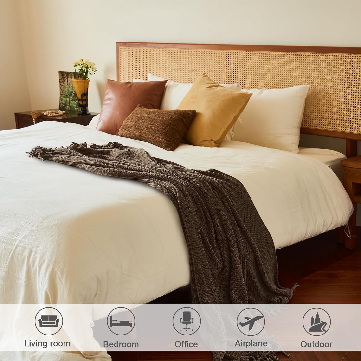- 【FANTASTICAL DESGIN】LIFEIN throw blanket for couch nicely neutral solid knit design and well-arranged rustic farmhouse style fringes, this chenille knitted throw blanket is in kinda dark brown, which is a pretty easy way to match your room to add an extra solid gold boho feature, don't you want have a dark brown throw blanket for your home decor?