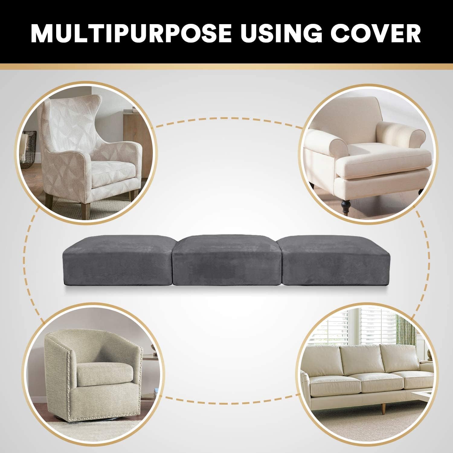 PrinceDeco Velvet Stretch Couch Cushion Cover Extra Large Cushion Slipcover for Chair Loveseat Sofa Cushion Furniture Protector Seat Cushion Sofa Cover (3 Piece XL Sofa Cushion Covers, Grey)