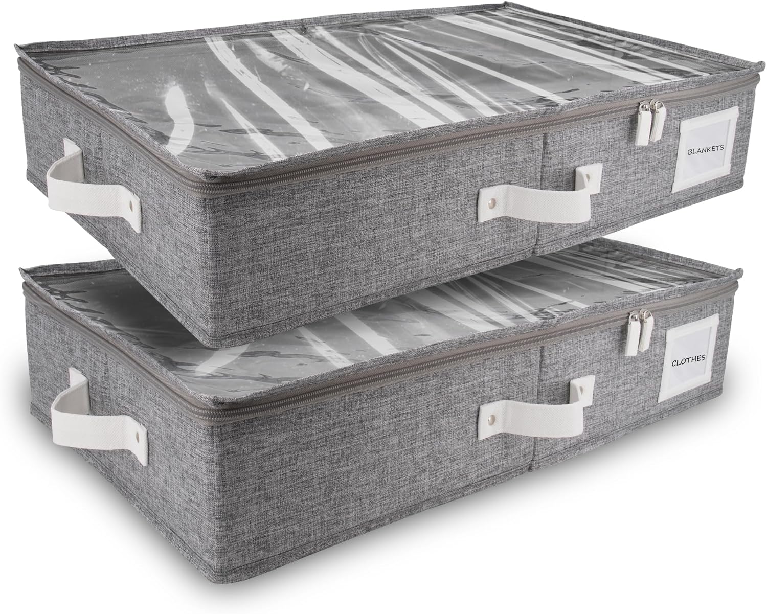 - ๐๐๐ ๐๐จ๐ฉ ๐๐จ๐ฏ๐๐ซ ๐ญ๐จ ๐๐๐๐ง๐ญ๐ข๐๐ฒ ๐๐จ๐ง๐ญ๐๐ง๐ญ๐ฌ ๐๐ฆ๐ฆ๐๐๐ข๐๐ญ๐๐ฅ๐ฒ: Homelux Theory's thin under bed storage containers come with a durable transparent PVC lid and 2 large label pockets, allowing you to easily identify the contentsโsuch as bedroom accessories, clothing, or linensโwithout opening the box. This versatile storage works well as a shoe drawer, under crib storage bin, or clothes box.