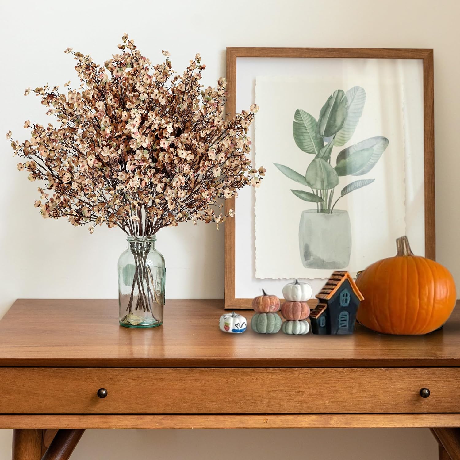 Sggvecsy 15 Pcs Babys Breath Artificial Flowers Gypsophila Bouquets Bulk Real Touch Fake Silk Flowers for Home DIY Floral Arrangement Table Centerpiece Fall Thanksgiving Autumn Decoration (Skin Brown)