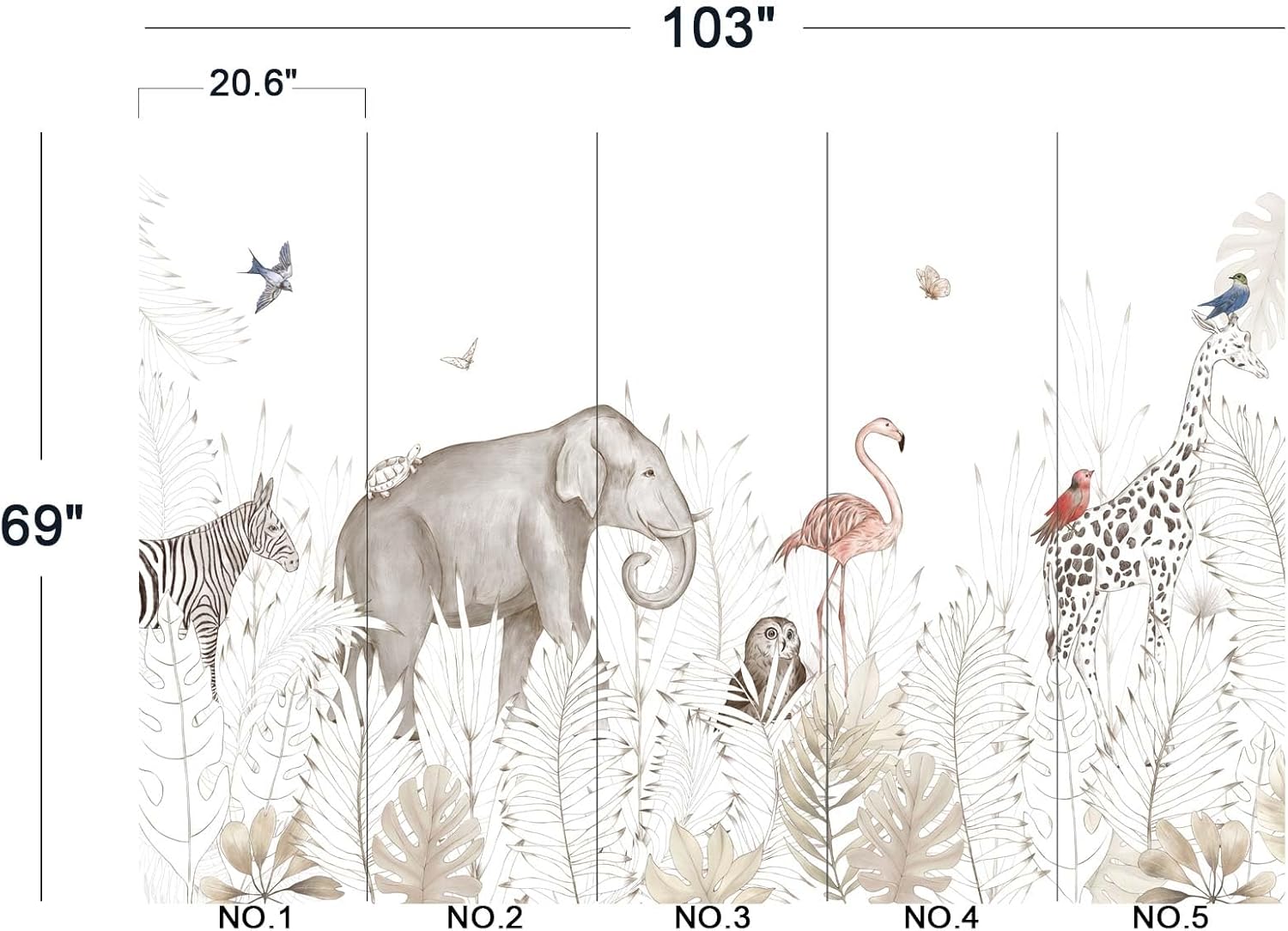 Elephant Zebra Animal Nursery Wallpaper Wall Mural 103" x 69"