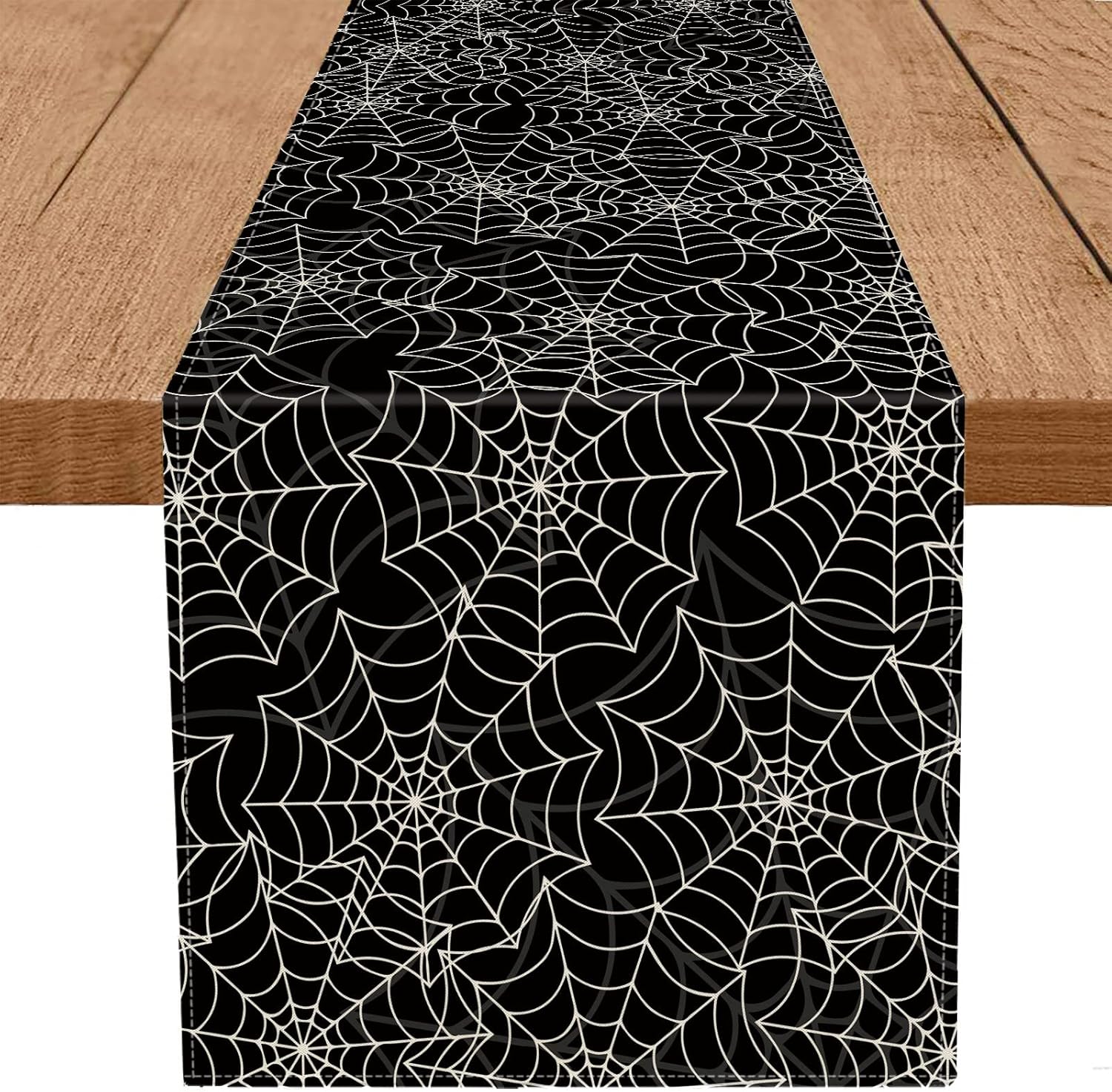Halloween Table Runner Spider Web Black Linen Table Runners for Seasonal Holidays Indoor Outdoor Kitchen Dining Party Home Decor 13 x 72 Inch