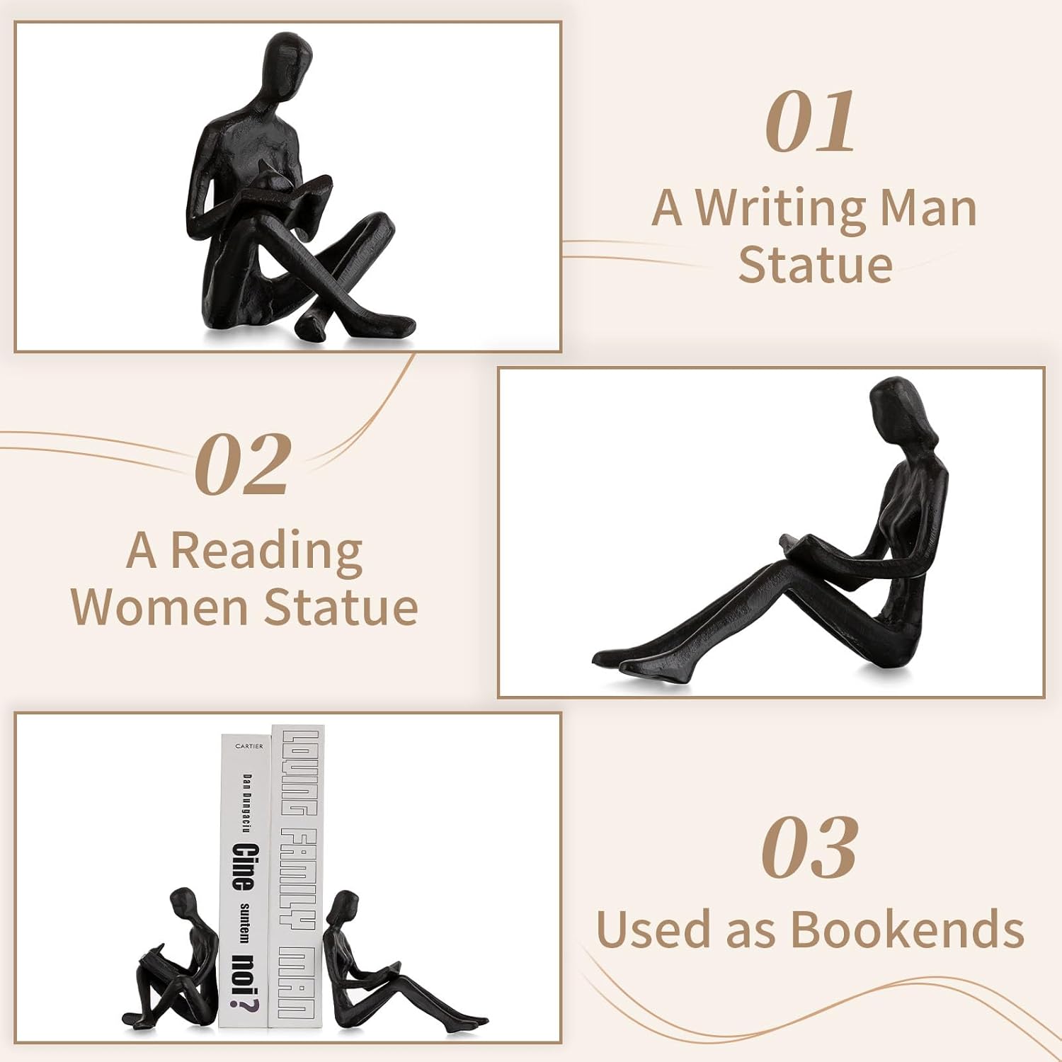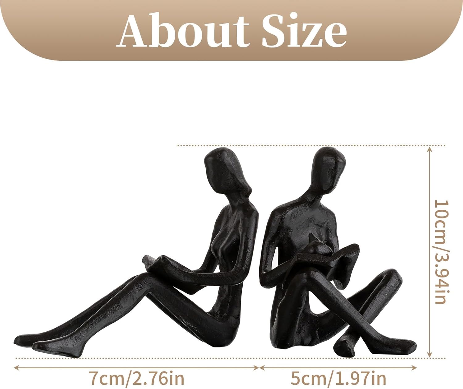 - ABOUT SIZE - The reading man book ends figurines is about 3.9in/10cm height x 2.8in/7cm wide, the reading woman bookend is about 3.9in/10cm height x 2in/5cm wide, good sized make it look passionate and creative.