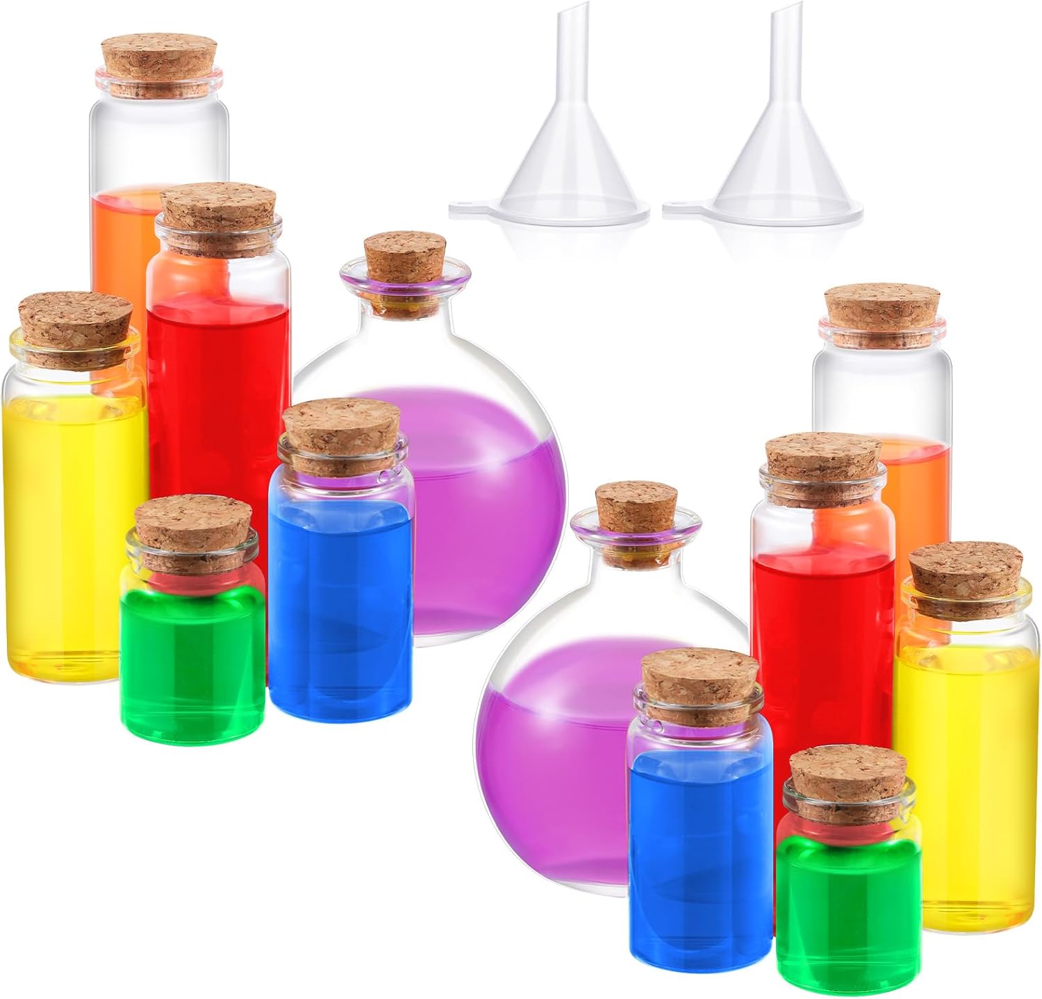 - Rich Quantity: you will get 10 pieces glass vials with cork and 2 spherical Halloween glass potion bottle with 2 funnels, suitable for those customers who are looking for a large supply of bottles for bulk purposes, you can use them for a long time;a good combination that will help you add ambiance to most witch or wizard related costume