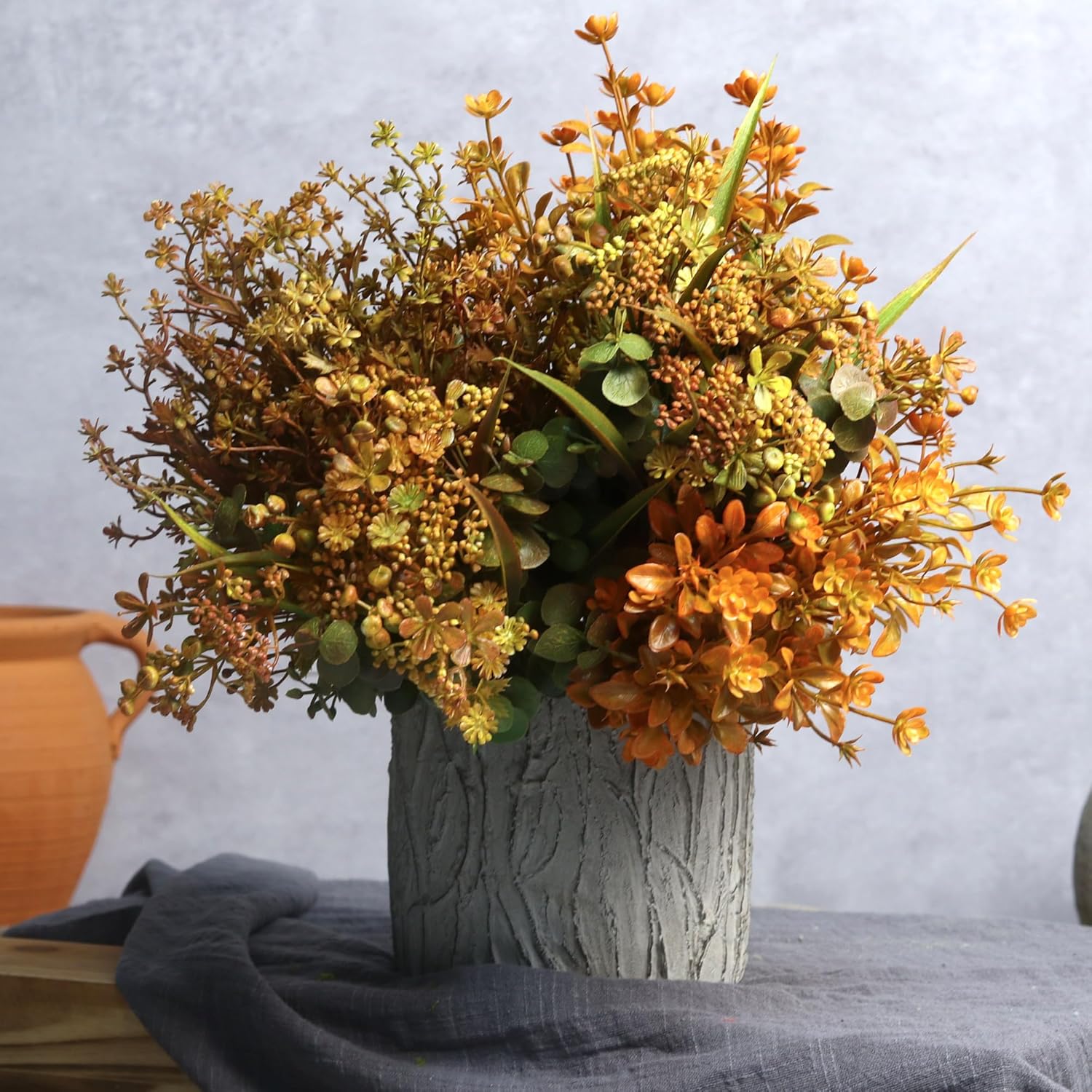 - 🏵️【WIDELY USED FOR FALL DECORATIONS】Want to create a lush home oasis without the work ? These artificial plants and flowers are perfect for the job! They can match with pumpkin decor and farmhouse decor, great fall flower centerpieces for tables, bedrooms, kitchen and mantle, can put them in vases and place them at home and office, create a fall atmosphere.