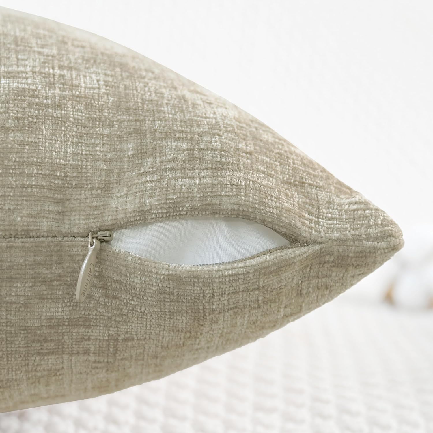 CaliTime Throw Pillow Covers Decorative 16 X 26 Inches Pack of 2 Cozy Chenille Cushion Cases for Couch Sofa Bed Living Room Home Light Taupe