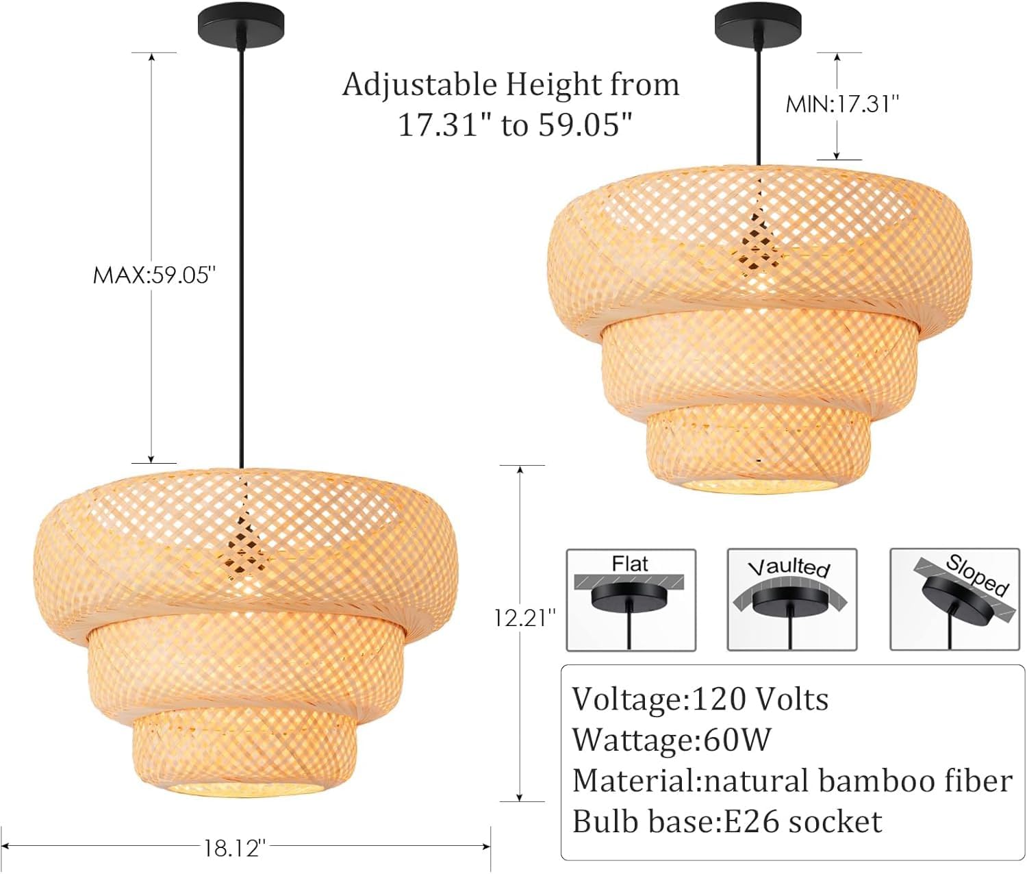 - 【Excellent Design】Bamboo/wood/rattan, the pendants are made of natural materials. The lights are hand woven with natural bamboo by superb skills bamboo artists. Decorated with classic tropical style elements, creates a wonderfully new look
