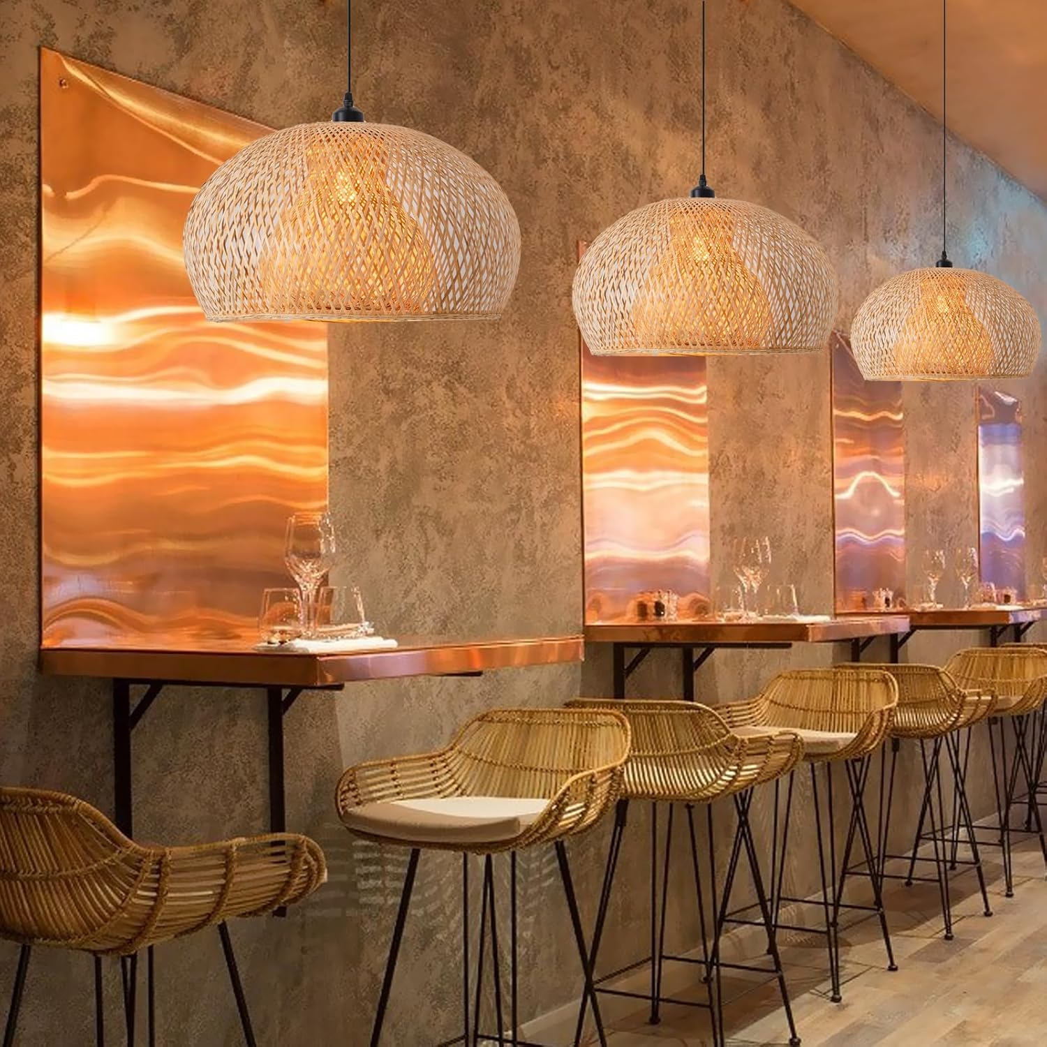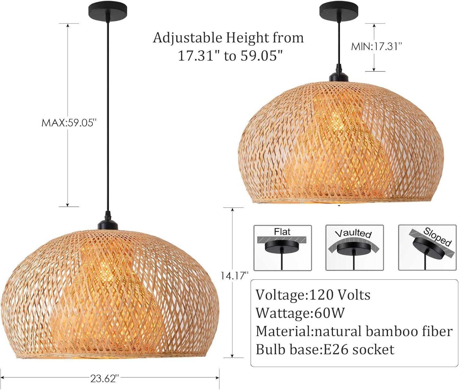 23.6" Bamboo Pendant Light Hand-Woven Rattan Hanging Lamp Boho Bamboo Chandelier for Dining Living Bedroom Kitchen Farmhouse