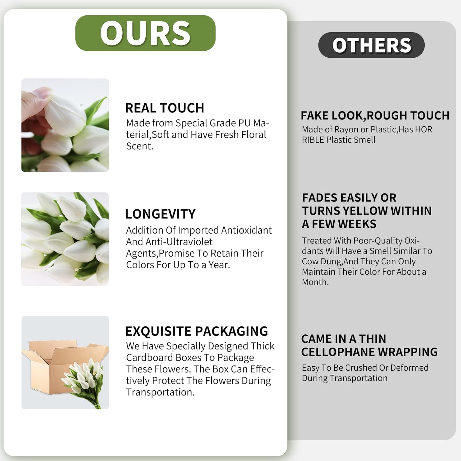 - High-Quality PU Material:Our artificial tulips are made of high-quality PU material,providing a soft touch just like real flowers,the realism is impressive. Completely eliminating the issue of plastic or chemical smells,making the flowers more environmentally friendly and harmless to the human body.