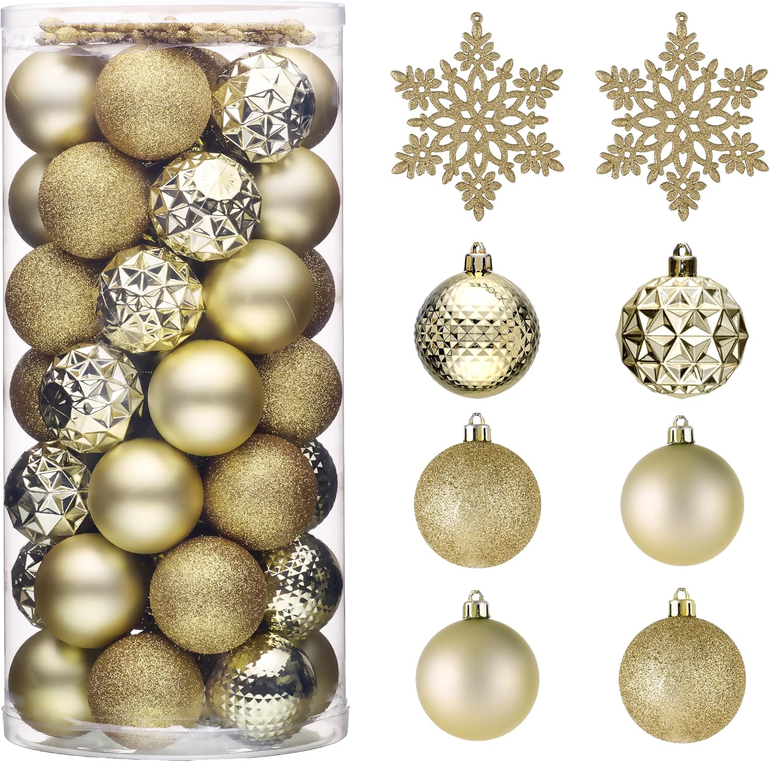 - 【Package and Size】This ornament ball set include 50pcs Christmas ornaments measuring 2.36 inches in diameter, featuring seamless connections for a polished look