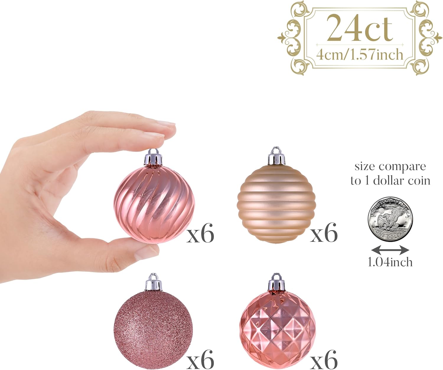 Valery Madelyn Christmas Ornaments Tree Decorations Set for Fall Halloween, 24ct Rose Gold Shatterproof Ball Ornaments, 2.36" Hanging Ornament Bulk for Xmas Holiday Party Decor