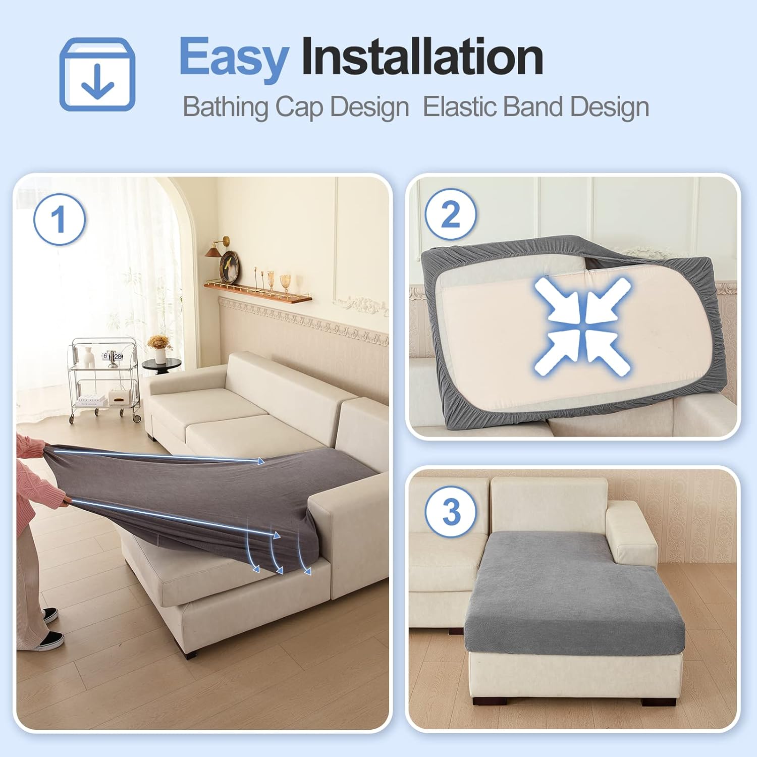 - 【Easy to install】This chaise couch cover is effortless to install and can be completed in just a few minutes. It includes elastic bands that securely fix the cover to the sofa, keeping it in the correct position. Please ensure to measure the size of your furniture before ordering to ensure a proper fit. This cover is suitable for T-cushion and Box cushion styles and is highly recommended for use with both leather and fabric furniture.