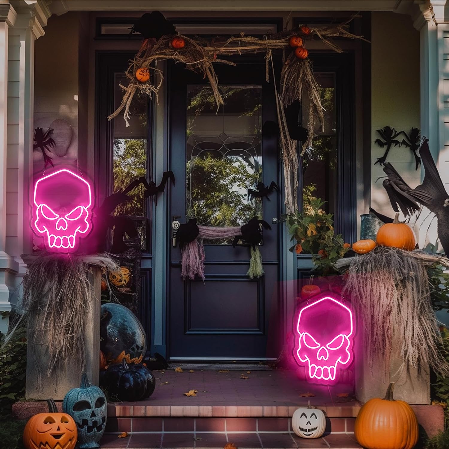 Skull Neon Sign Pink,Halloween Neon Light for Wall Decor, Skeleton LED Neon Sign for Beer Bar Bedroom Art,Skull Head Neon Lights Suitable for Computer Room,5V USB Power 15.75 * 11.8in(Non-Dimmable)