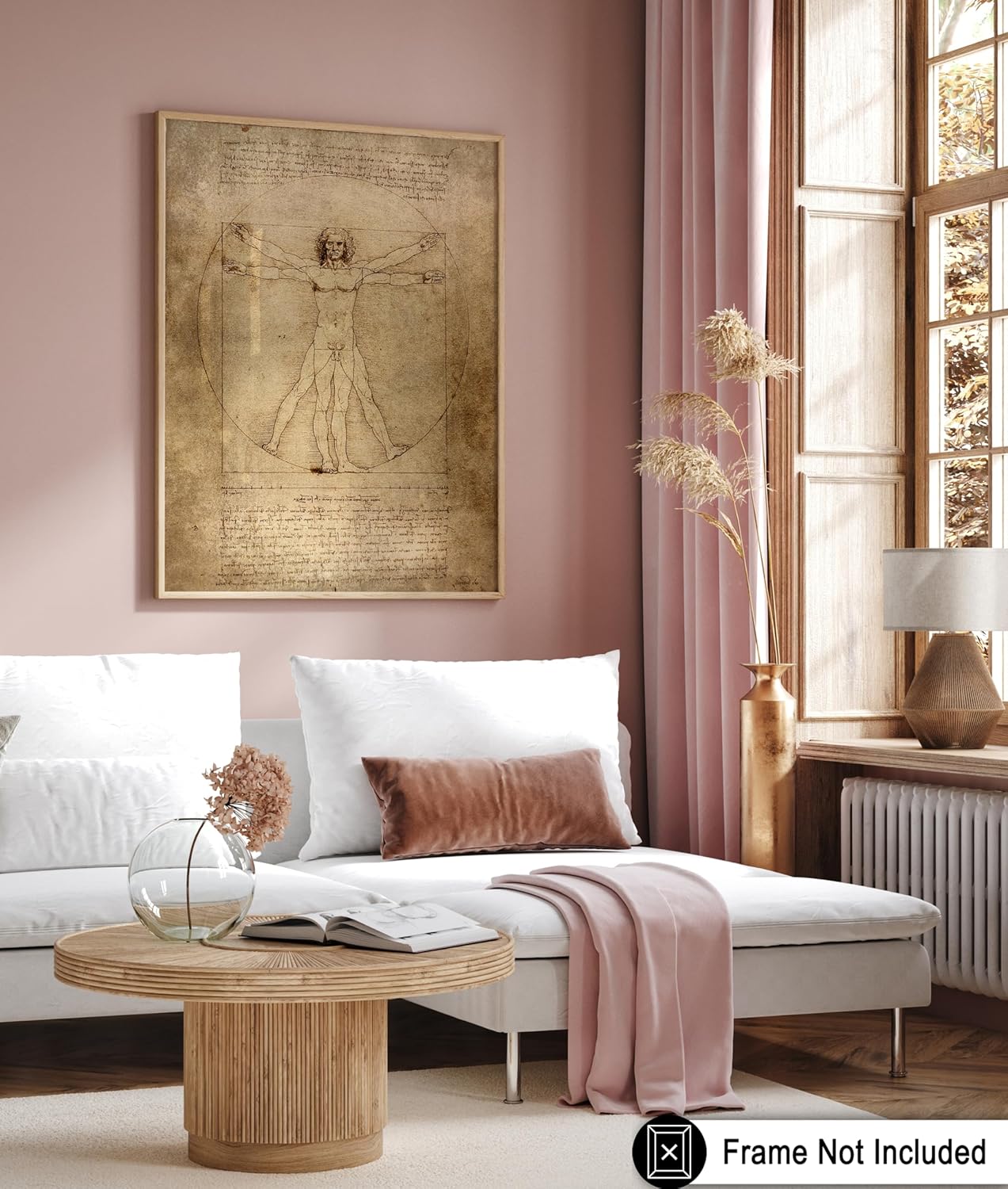 Poster Master Vintage Leonardo Da Vinci Poster - Retro Vitruvian Man Print - Drawing Art - Renaissance Art - Gift for Men & Women - Decor for Living Room, Bedroom or Office - 16x20 UNFRAMED Wall Art