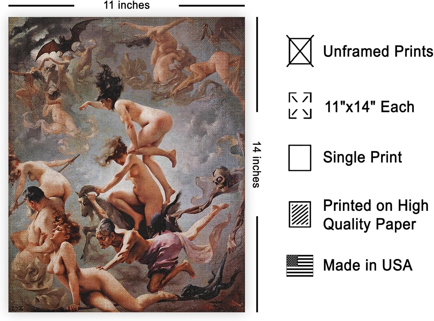 Poster Master Vintage Witches Going to their Sabbath Poster - Retro Naked Witches Print - Halloween Art - Pagan Art - Gift for Men & Women - Gothic Decor for Bedroom or Dorm - 11x14 UNFRAMED Wall Art