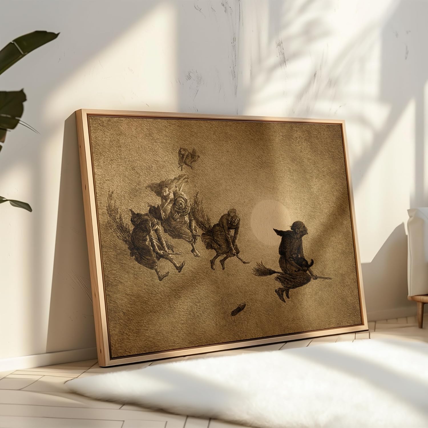 Poster Master Vintage Witches Ride Poster - Retro Flying Witches Print - Halloween Art - Pagan Art - Gift for Men & Women - Gothic Wall Decor for Living Room, Bedroom or Dorm - 8x10 UNFRAMED Wall Art