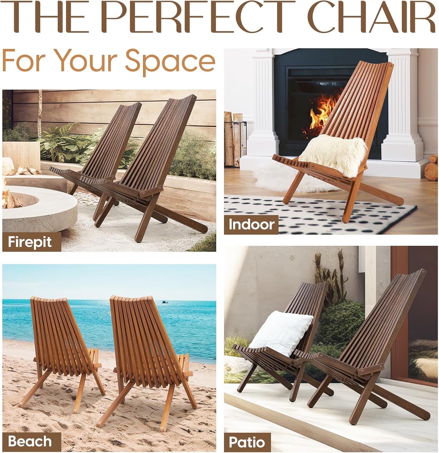 - 🪑 FOLDABLE TAMARACK CHAIRS: This unique folding wooden chairs elevate any space it grace; The space saving wood patio chairs fold up easily for storage; These tamarack chairs, as an alternative to modern adirondack chairs are easy to maintain with a wipe