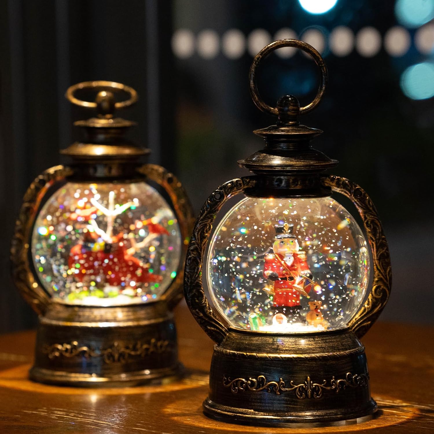 - 🎅🎄【Snow Globe Lantern】The realistic and mighty nutcracker design, When turned on a warm LED shines on the figurine and swirling glitter to gives our Christmas globe a whimsical look for the Christmas Holiday season.
