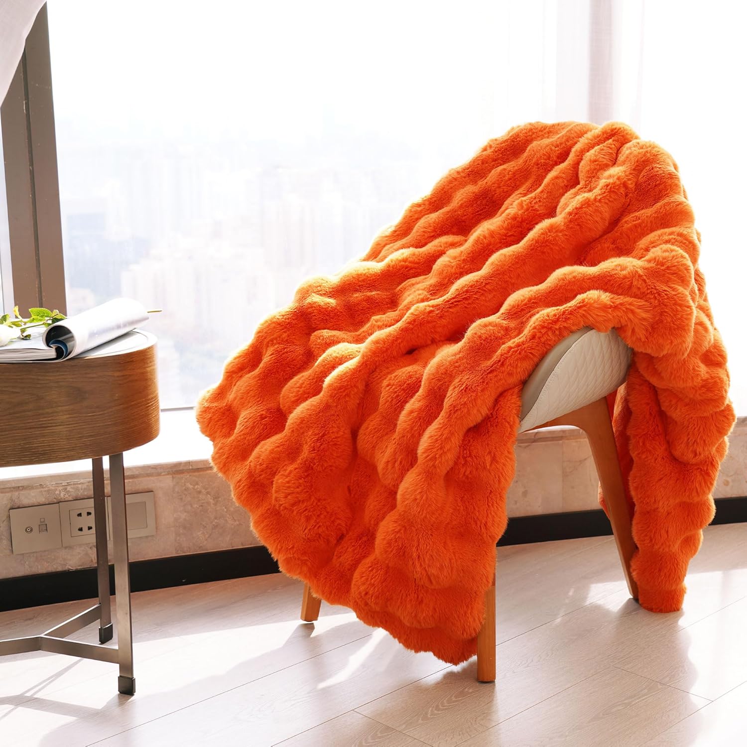 DREAMNINE Decorative Fuzzy Soft Fall Bubble Faux Fur Throw Blanket for Couch 50" x 60",Luxury Autumn Plush Fluffy Blankets,Cute Lovely Halloween Cozy Thick Warm Furry Blanket for Winter,Pumpkin Orange